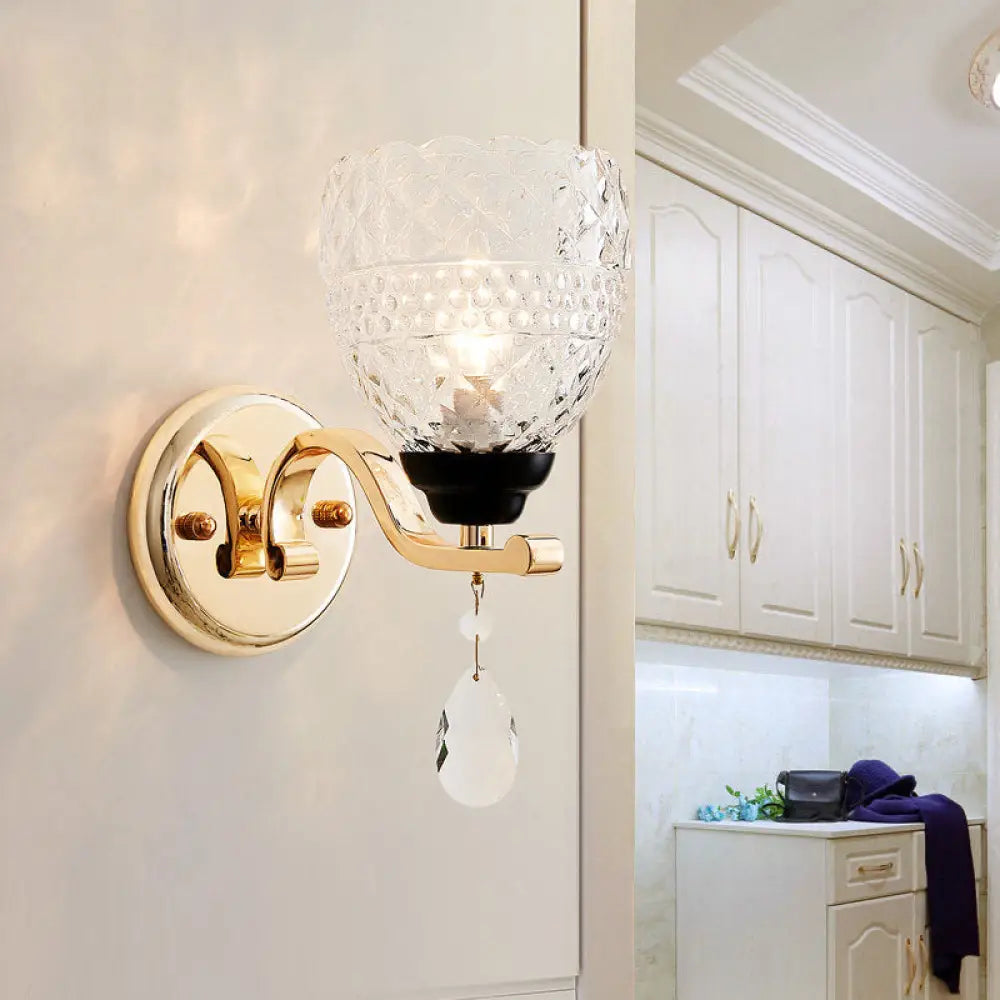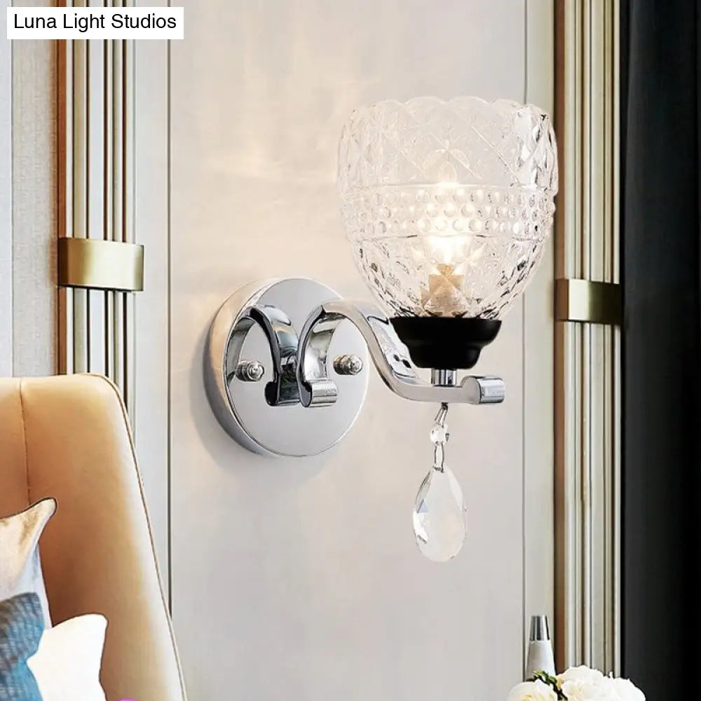 مصباح حائطي معاصر من ديكوربايتس™ مصنوع من الزجاج المزخرف مع قطرة كريستال على شكل دمعة - لمسة نهائية من الكروم