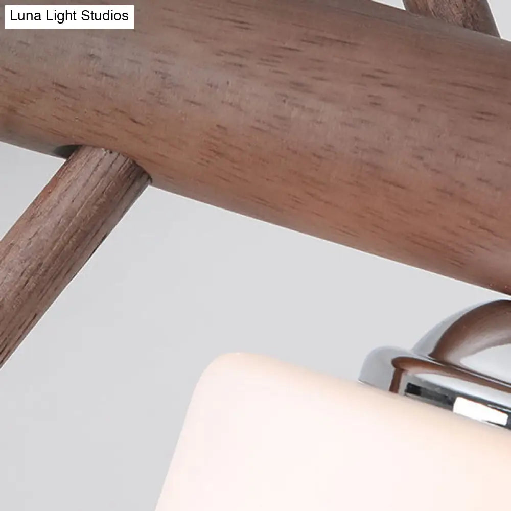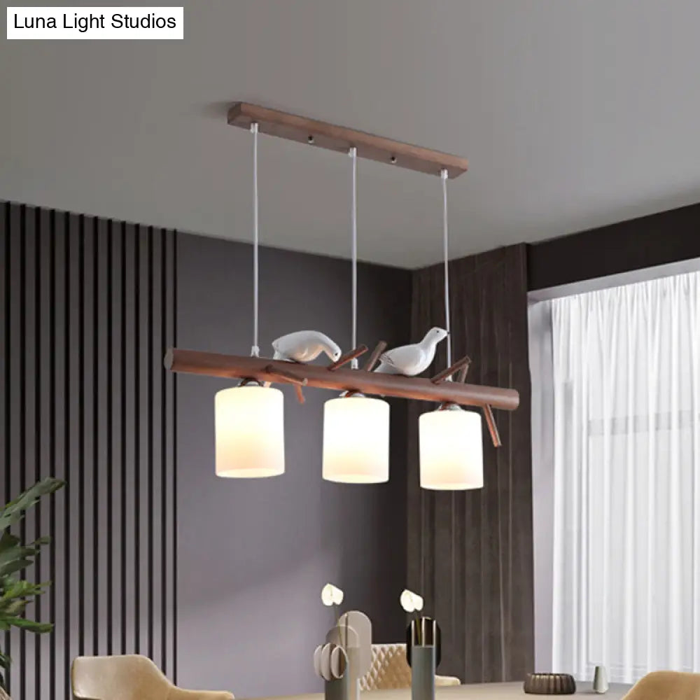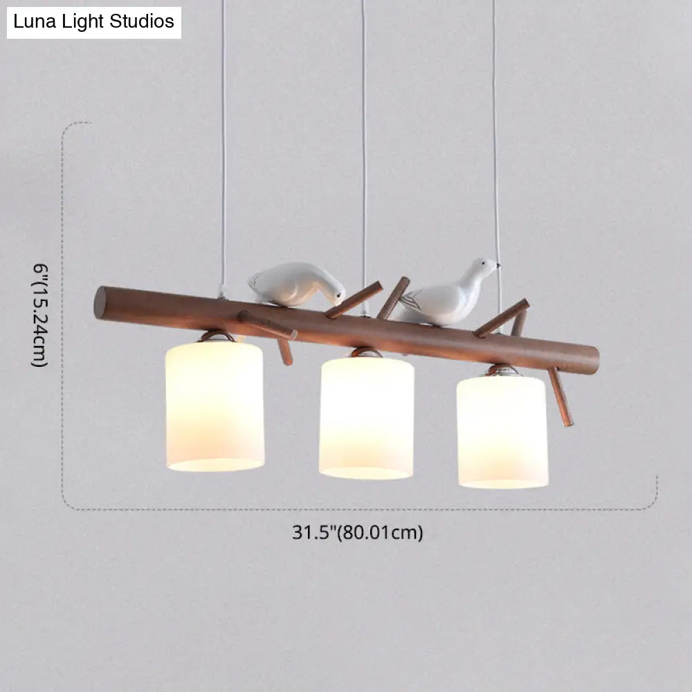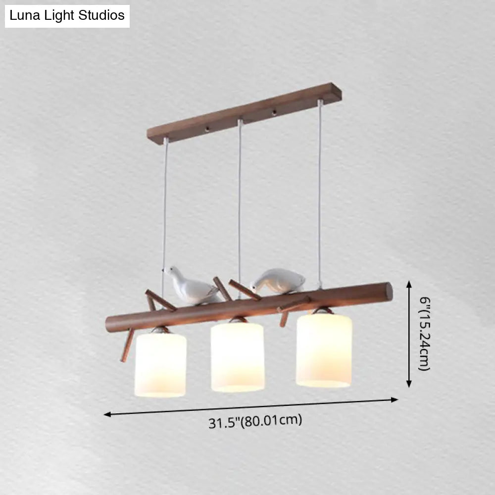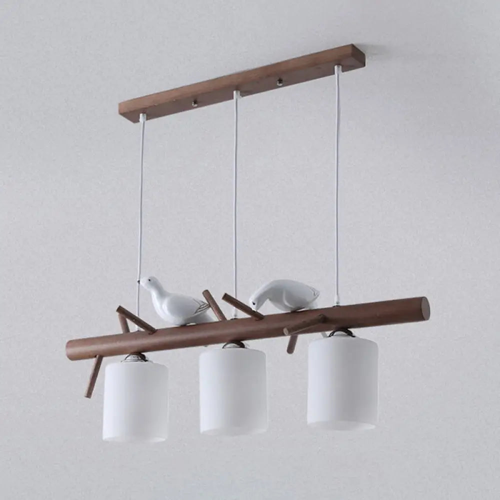 ديكوربايتس™ - مصباح جزيرة خشبي معاصر بتصميم كسارة البندق وأغطية زجاجية أسطوانية - مجموعة من 3 مصابيح