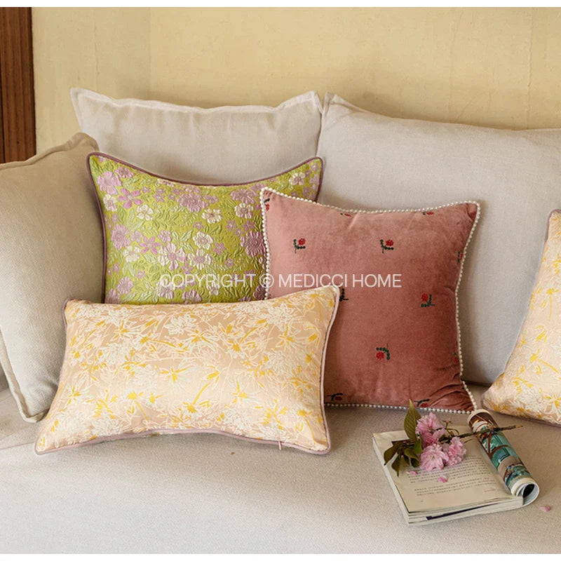 غطاء وسادة كونتيسا كاميليا من ديكوربايتس™: غطاء وسادة فرنسي كلاسيكي ثلاثي الأبعاد من قماش الجاكار الزهري