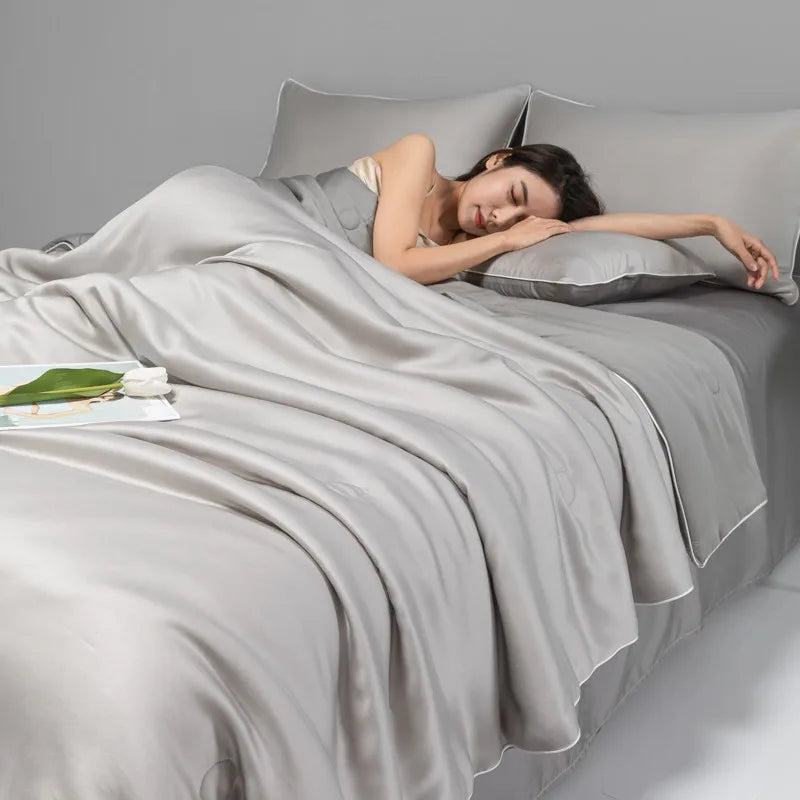 طقم لحاف صيفي من الحرير الجليدي البارد من DecorBites™ للأسرّة الفردية المزدوجة
