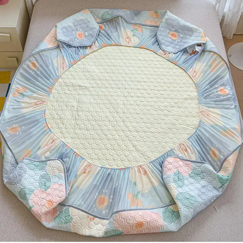نقدم لكم مجموعة ملاءات Decorbites Cool Silk Latex Fitted مع أكياس الوسائد، المصممة لإضفاء لمسة من الفخامة والراحة إلى غرفة نومك.