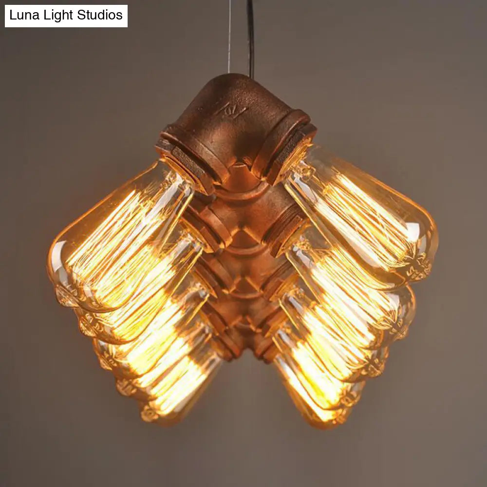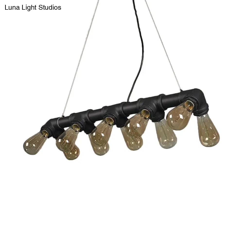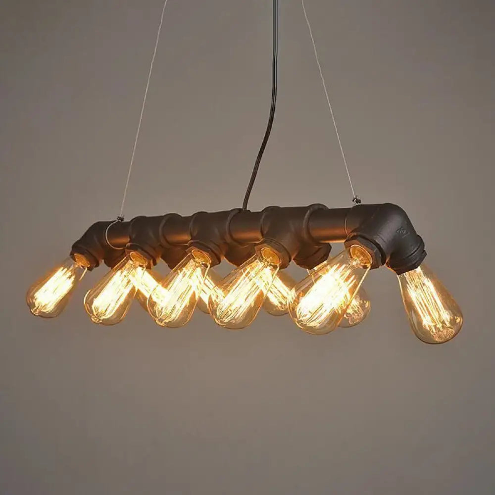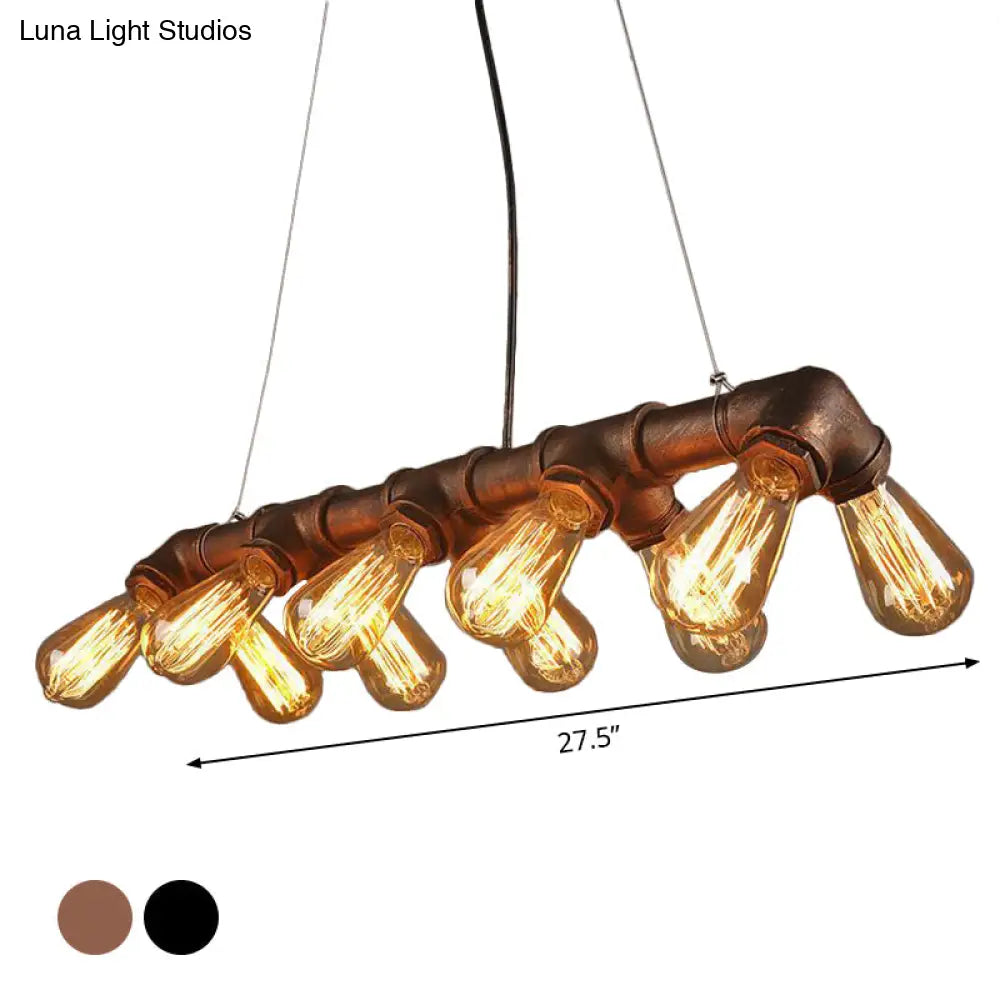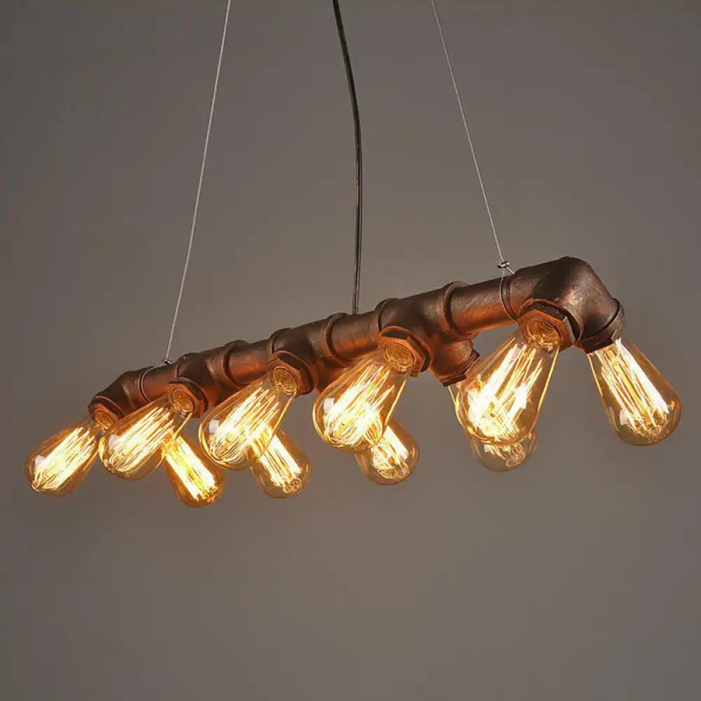ديكوربايتس™ مصباح معلق صناعي من النحاس والأسود لجزيرة المطبخ مع أنابيب متماثلة و10 لمبات