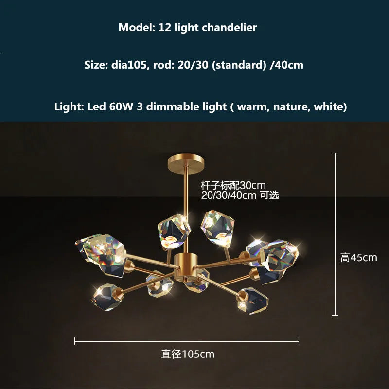 نقدم لكم ثريا ديكوربيتس النحاسية الكريستالية القابلة للتعتيم بتقنية LED، بثلاثة مصابيح، وهي وحدة إضاءة أمريكية عصرية فاخرة تُضفي لمسة من الأناقة على أي مساحة. صُنعت هذه الثريا من مواد عالية الجودة، وتتميز بالرقي والأناقة.