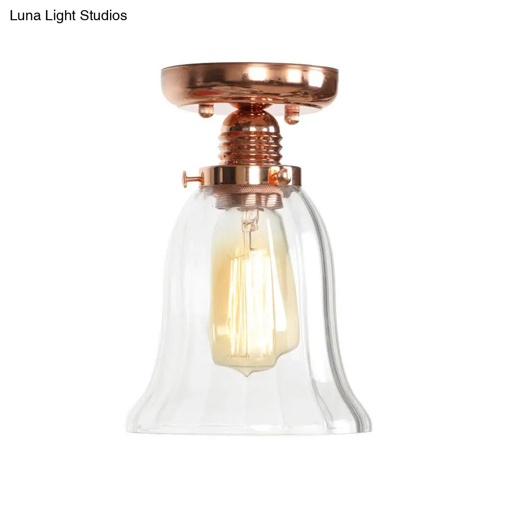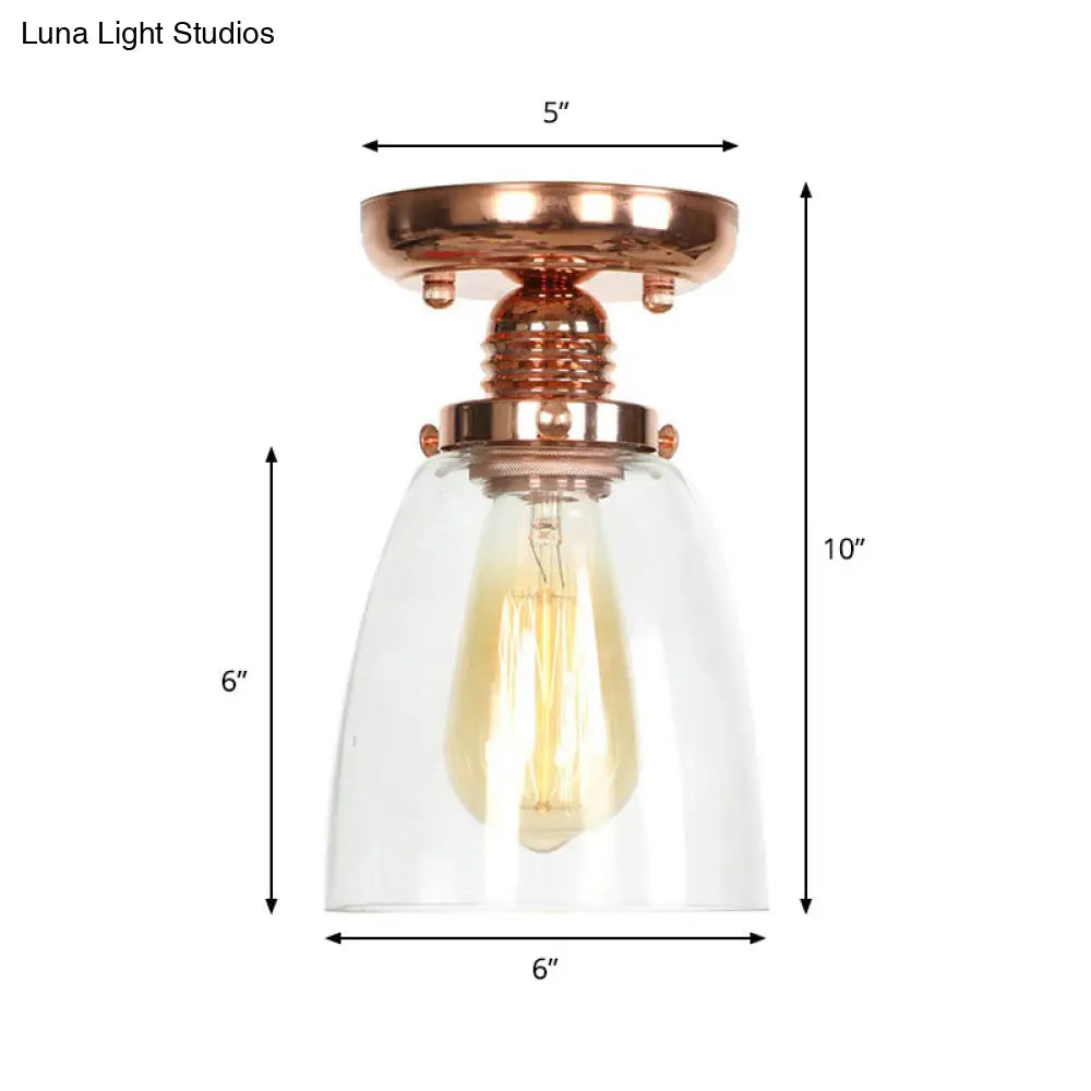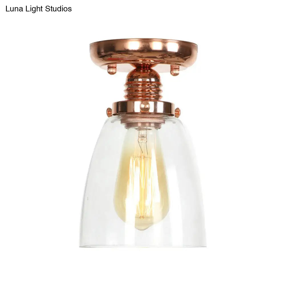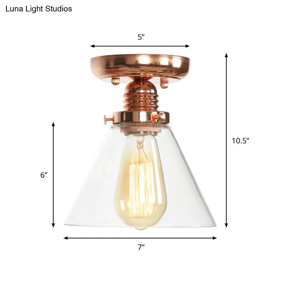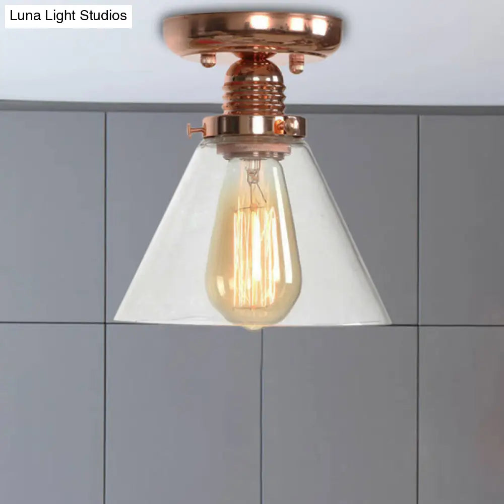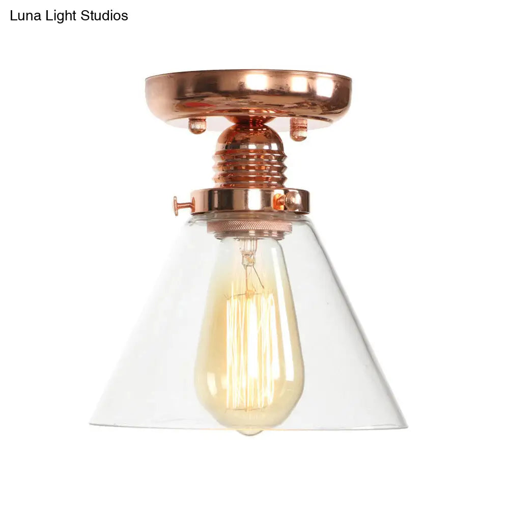 ديكوربايتس™ تركيبات سقف نحاسية شبه مستوية: غطاء مخروطي/أسطواني/جرسي من الزجاج الشفاف لغرفة المعيشة الصناعية مع ضوء واحد
