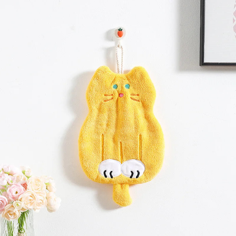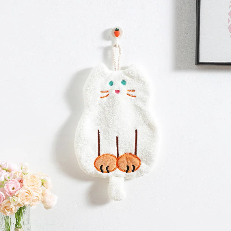 منشفة يد من الألياف الدقيقة بتصميم قطة مرجانية من DecorBites™: إكسسوار لطيف وسريع الجفاف للمطبخ والحمام