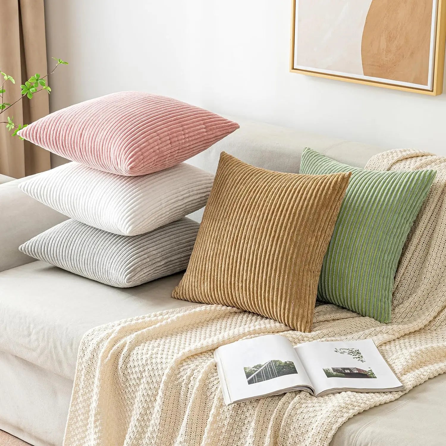 نقدم لك أغطية الوسائد المخططة من Decorbites Corduroy، الإضافة المثالية لمجموعة ديكور منزلك.