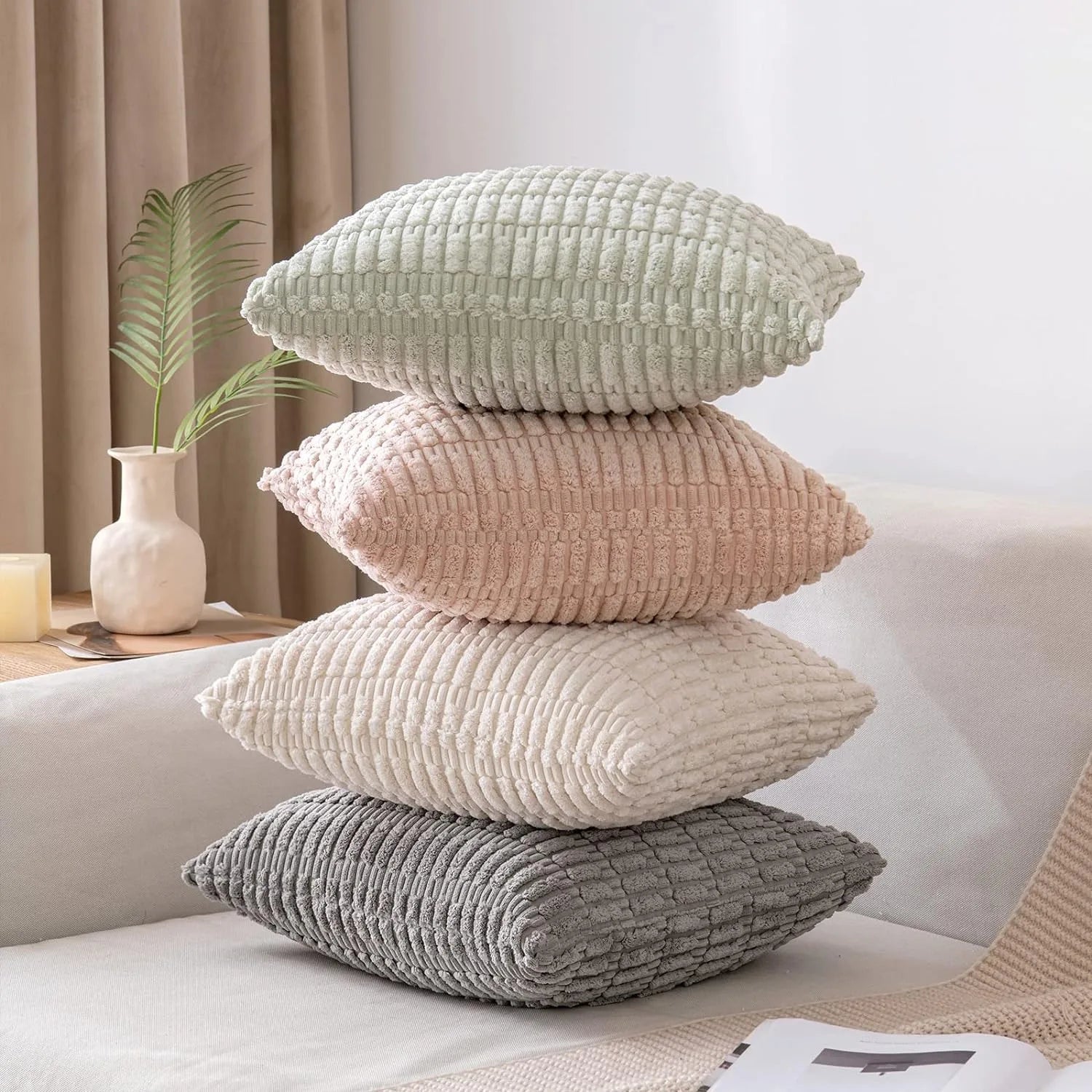 أغطية وسائد ديكوربايتس™ من قماش مخملي مخطط | غطاء وسادة مربع أبيض ناعم مزخرف