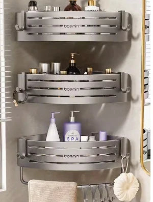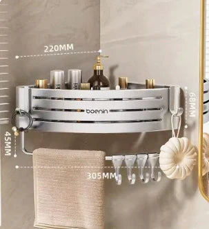 رف زاوية DecorBites™ مع خطاف قضيب منشفة، منظم من الألومنيوم للحمام والمطبخ