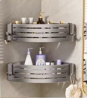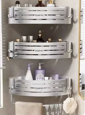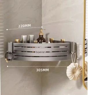 نقدم لكم رف ديكوربايتس الزاوي المزود بخطاف لتعليق المناشف، وهو منظم أنيق وعملي مصمم للحمامات والمطابخ. مصنوع من ألومنيوم عالي الجودة، يجمع هذا الرف بين الأناقة والعملية ليُضفي لمسةً مميزة على مساحة معيشتكم.