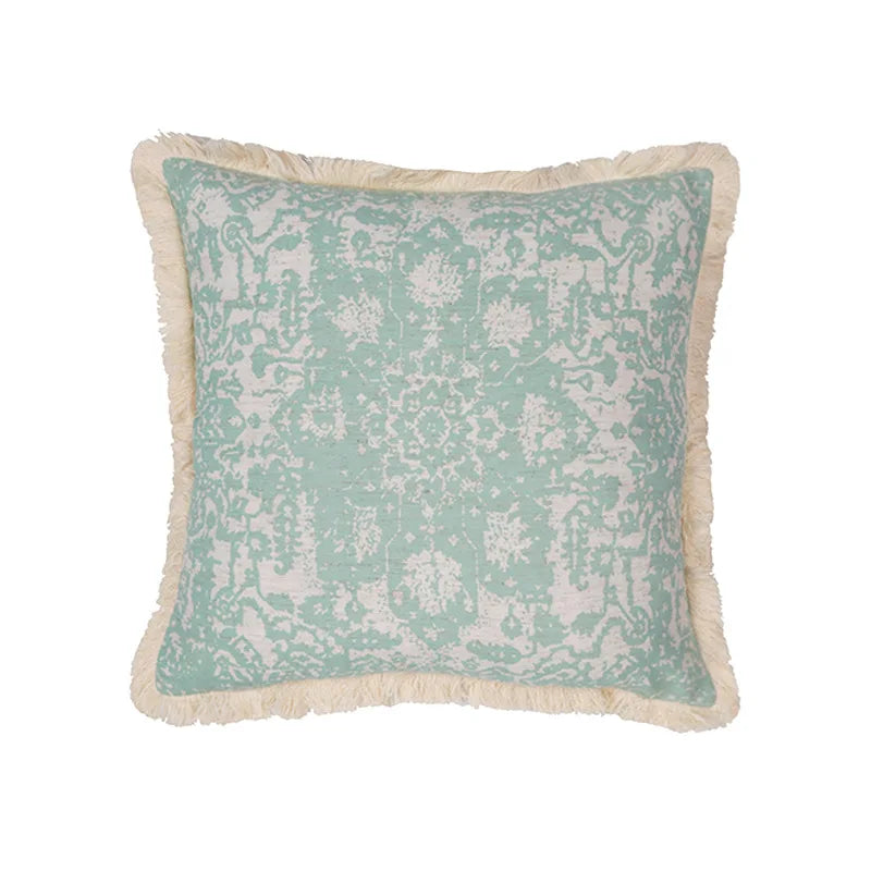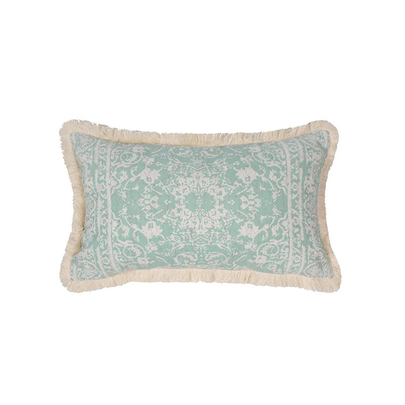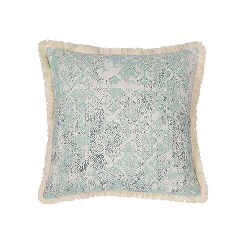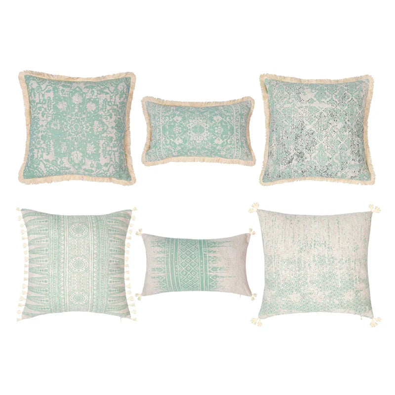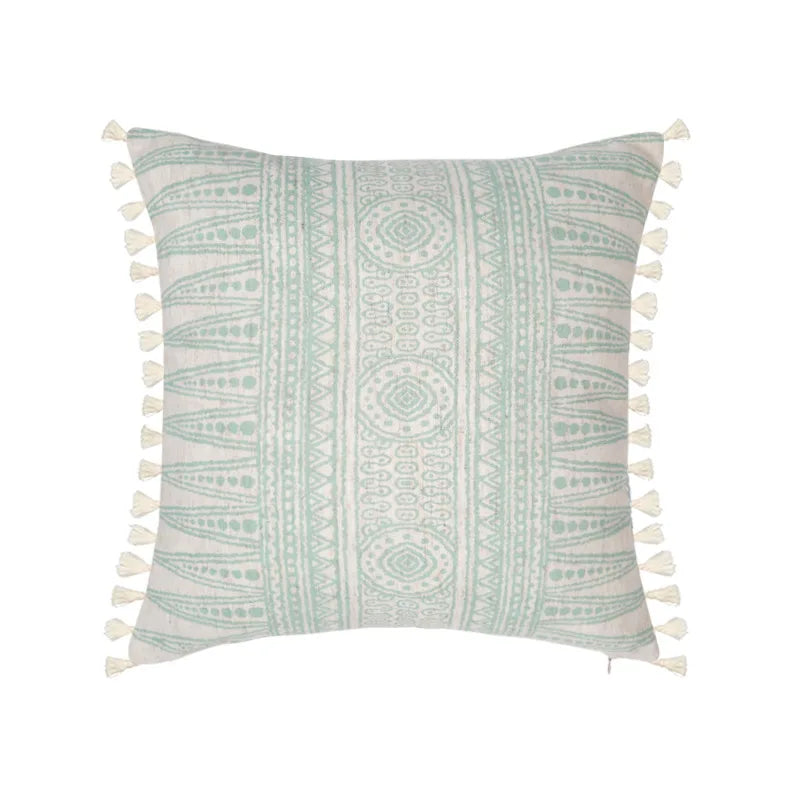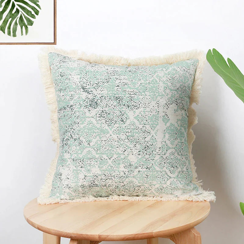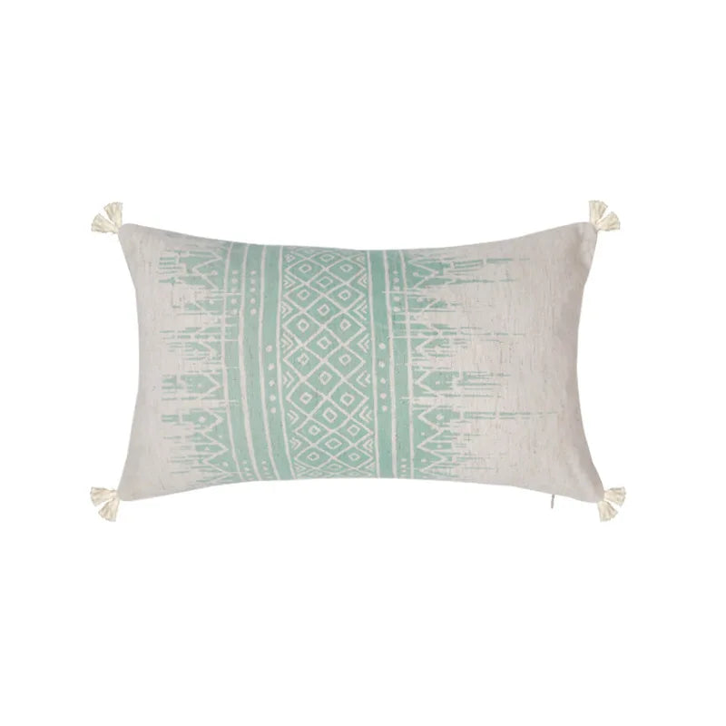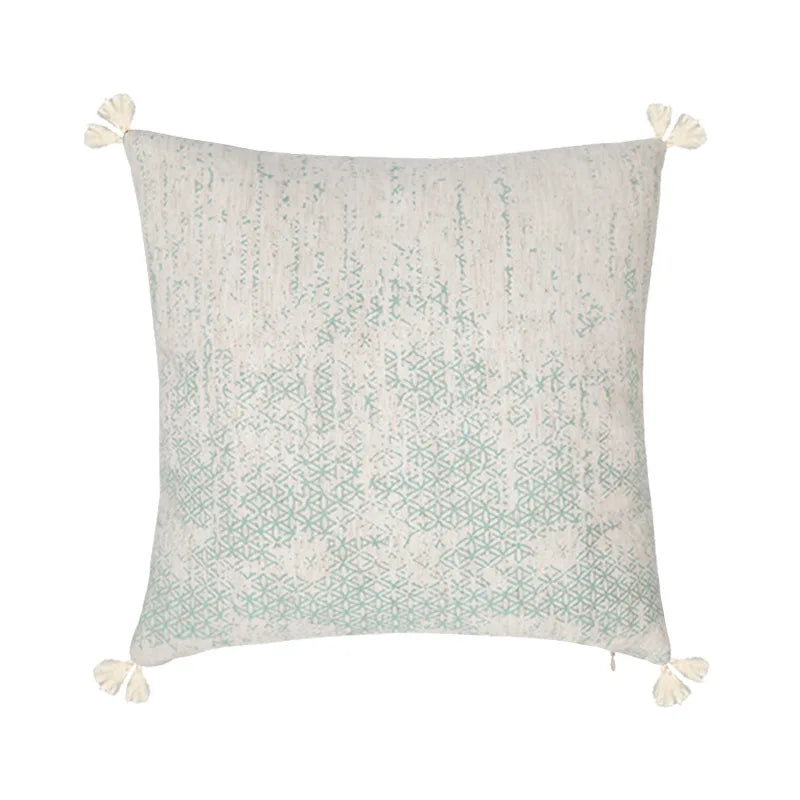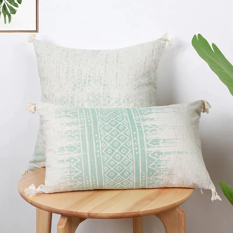 صُنع غطاء الوسادة هذا من مزيج من القطن والبوليستر عالي الجودة، ويتميز بنمط هندسي فريد يضفي لمسة من الرقي على أي مساحة. تُضفي تفاصيل الشرابات الدقيقة وتقنية الطباعة اليدوية لمسةً فريدةً من نوعها.