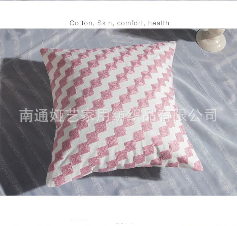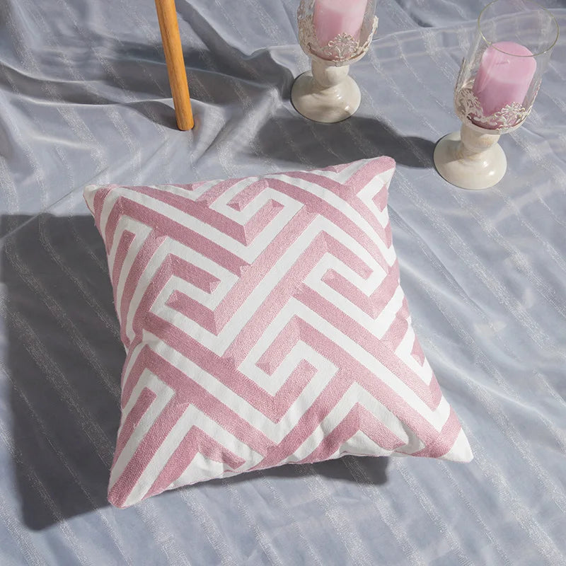 غطاء وسادة قطني مطرز بنقشة زهور هندسية من DecorBites™ مقاس 45*45 سم - وسائد بجانب السرير لغرفة المعيشة والأريكة