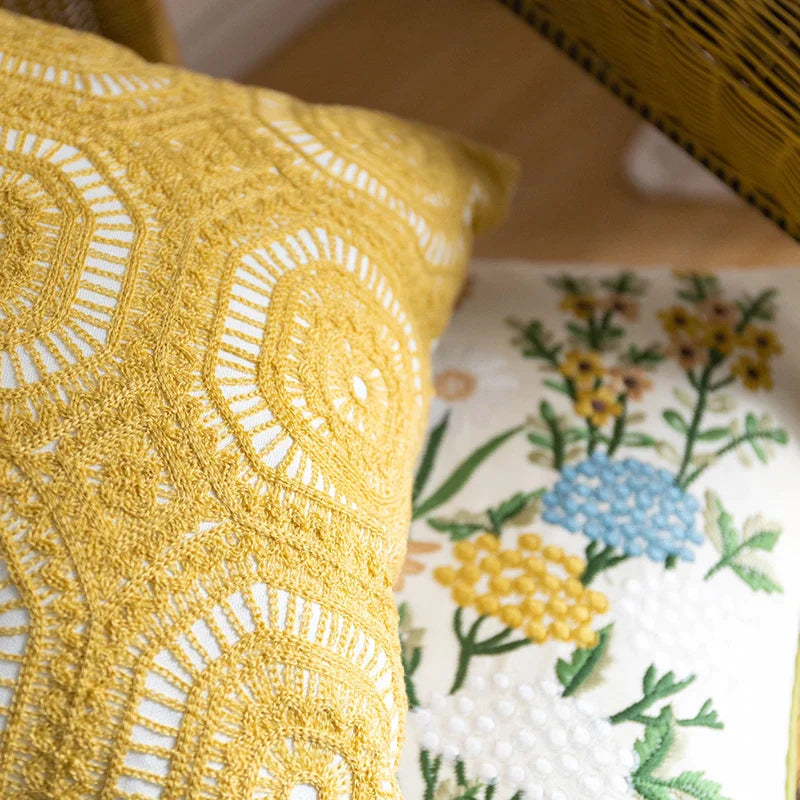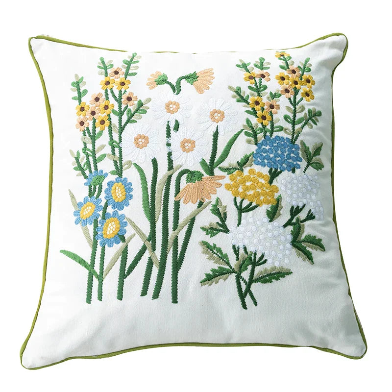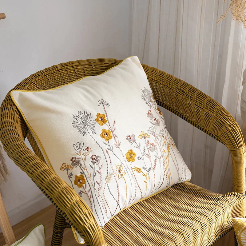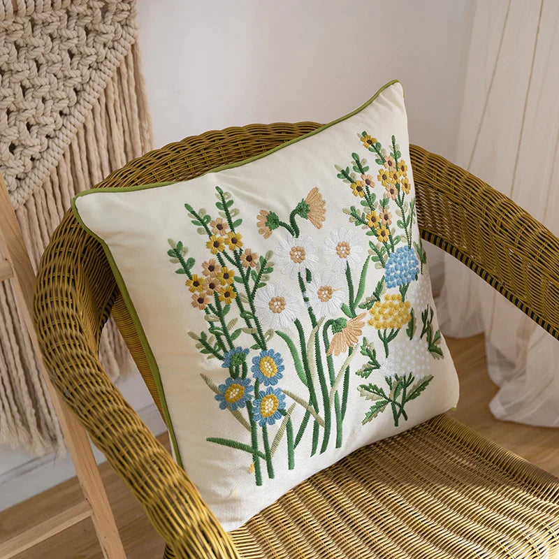 غطاء وسادة DecorBites™ مطرز من القطن والكتان على الطراز الياباني مقاس 45 × 45 سم
