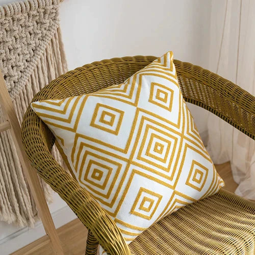 استمتع بفخامة غطاء وسادة ديكوربايتس المطرّز بالقطن والكتان على الطراز الياباني، بمقاس 45×45 سم. مصنوع من أجود أنواع الكتان والقطن، يتميز هذا الغطاء بنقش هندسي خلاب مع نمط جاكار، يضفي لمسة من الأناقة على أي غرفة.