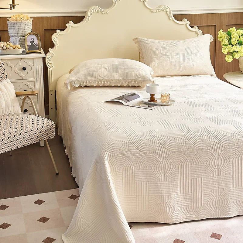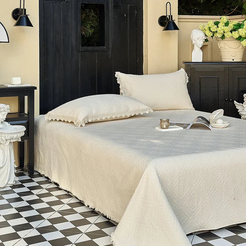 نقدم لكم مجموعة أغطية السرير المبطنة المصنوعة من القطن من Decorbites مع تنورة السرير وأغطية الوسائد، المصممة لإضفاء الراحة والأناقة إلى منزلك أو فندقك.