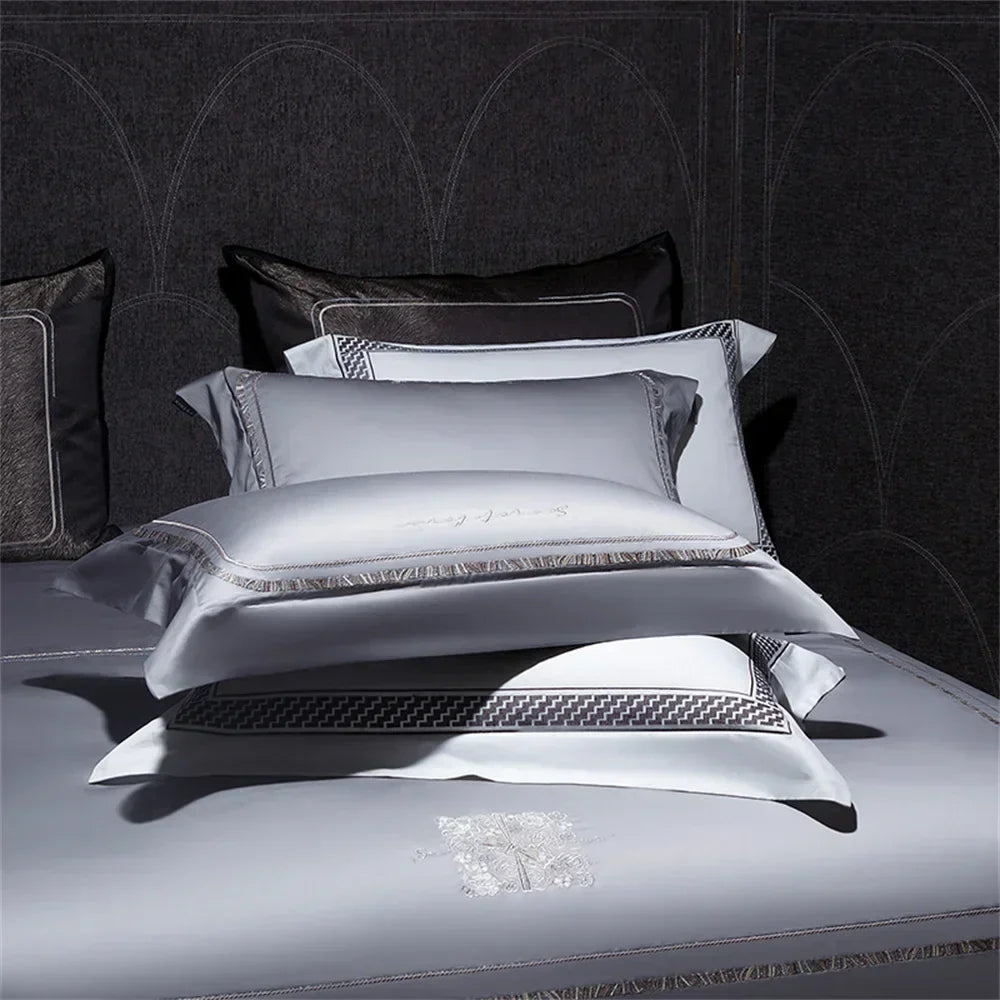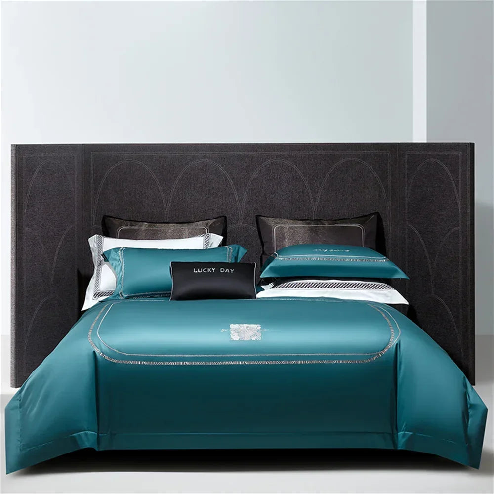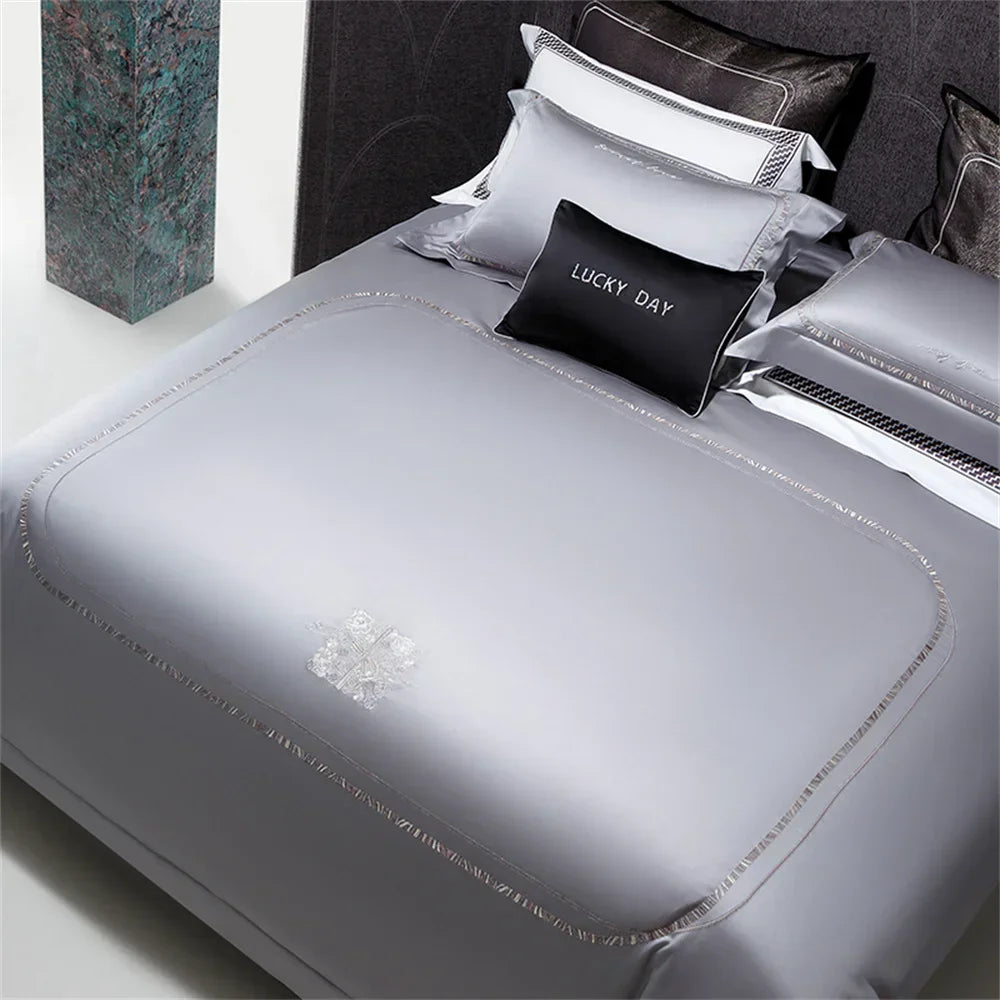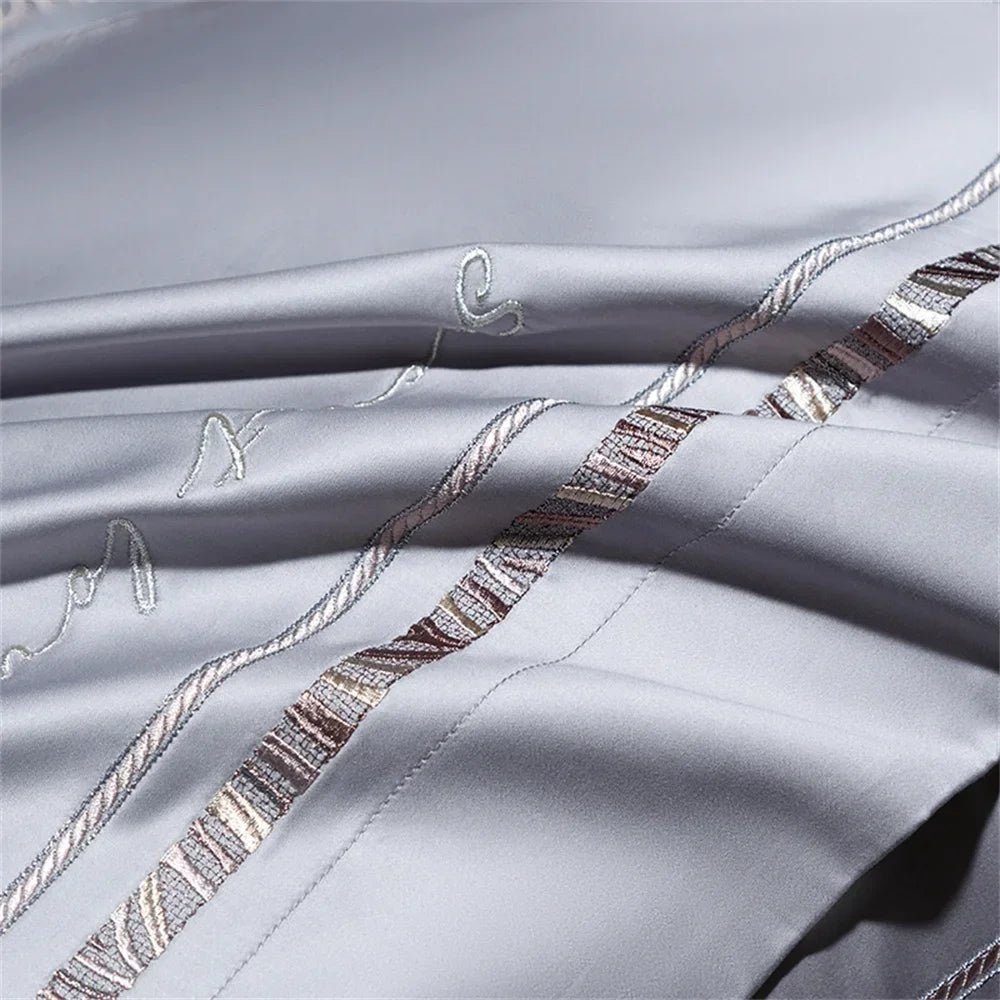 طقم أغطية سرير DecorBites™ من القطن والساتان والجاكار المطرز مع ملاءة مرنة وغطاء لحاف