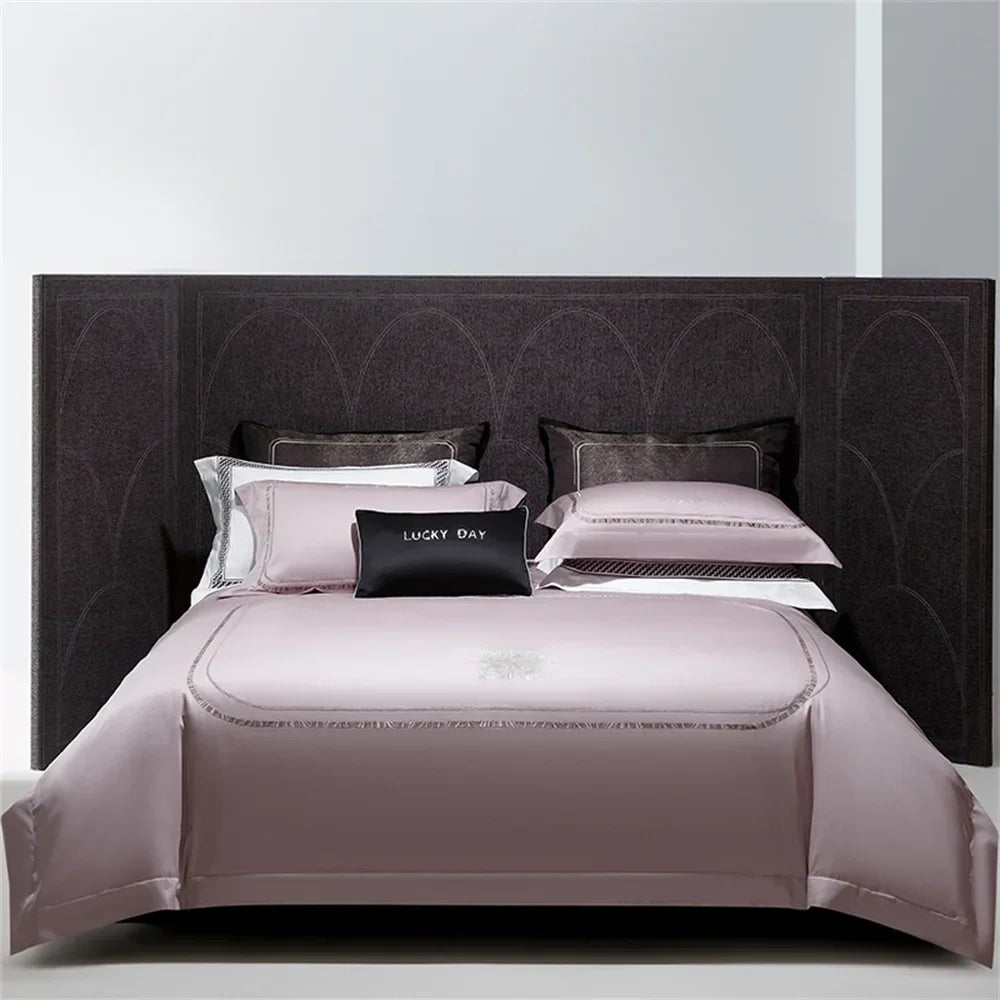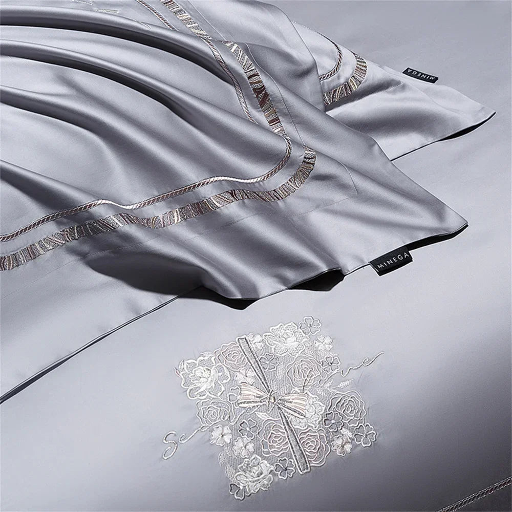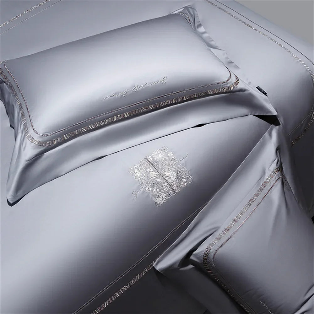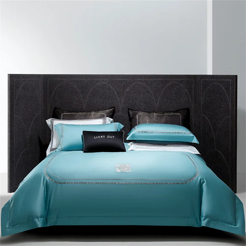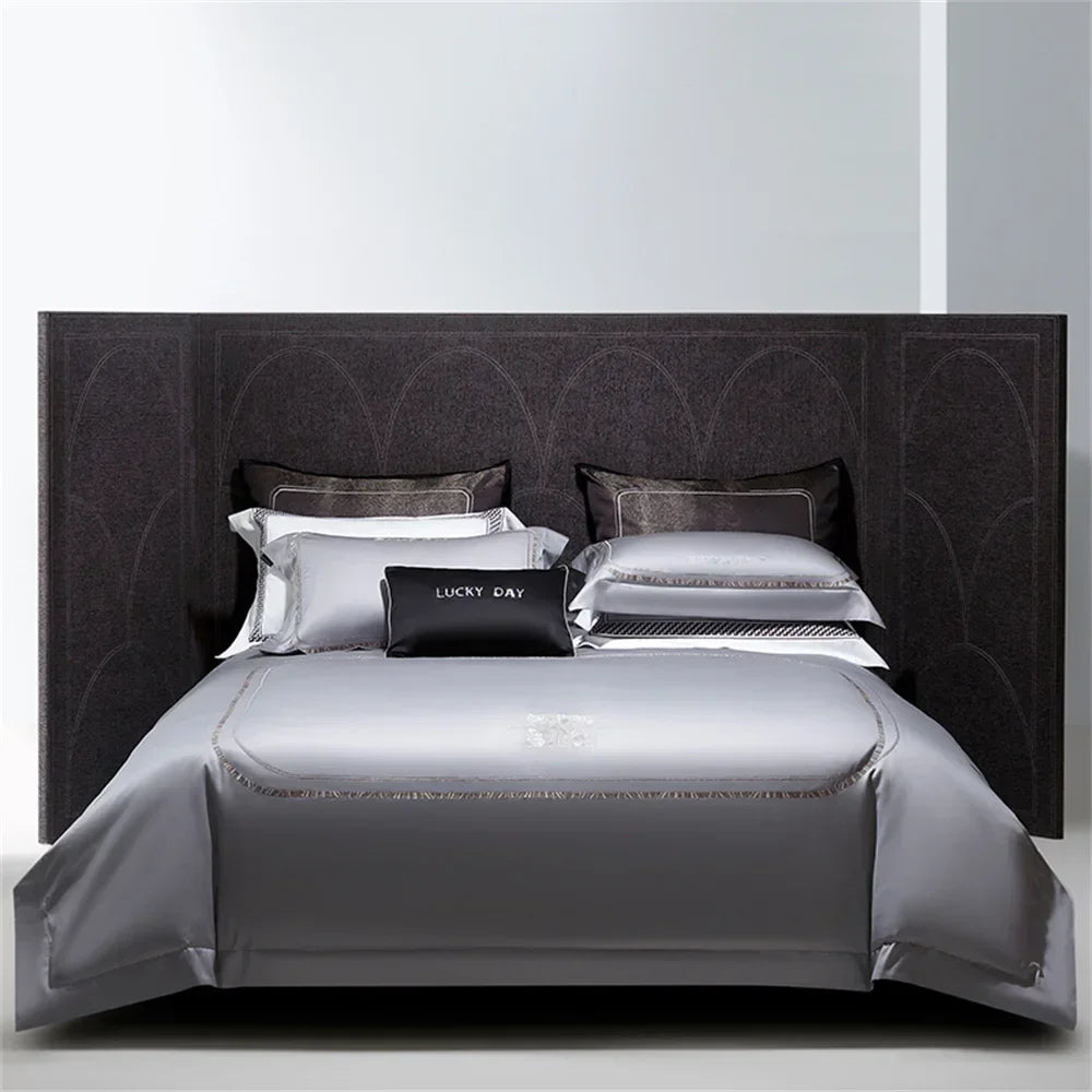 طقم أغطية سرير DecorBites™ من القطن والساتان والجاكار المطرز مع ملاءة مرنة وغطاء لحاف
