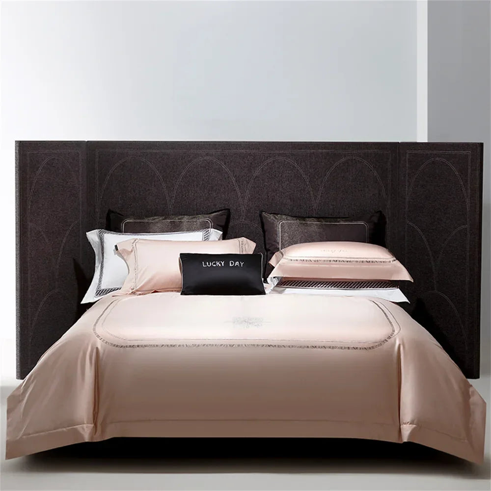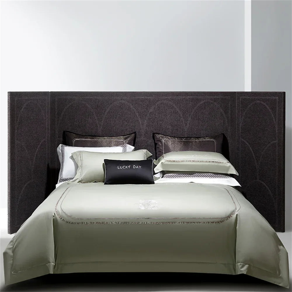 نقدم لكم طقم مفروشات ديكوربيتس الفاخر من القطن والساتان والجاكار المطرز، مع ملاءة مرنة وغطاء لحاف، مصمم ليُضفي لمسةً من الأناقة على ديكور غرفة نومكم ويوفر راحةً لا مثيل لها. مصنوع من أجود أنواع القطن 100%، ويتميز بنسيج فاخر من 600TC لتجربة نوم هانئة.
