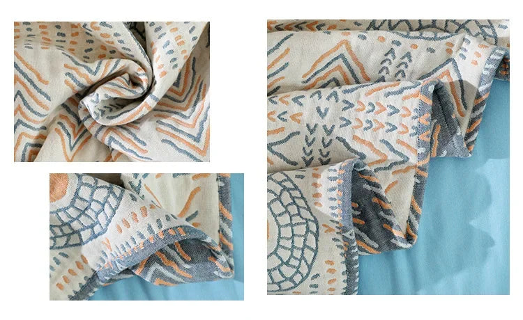 بطانية أريكة قطنية من ديكوربايتس™ | غطاء وسادة وغطاء سرير من الشاش بنقشة الفصول الأربعة
