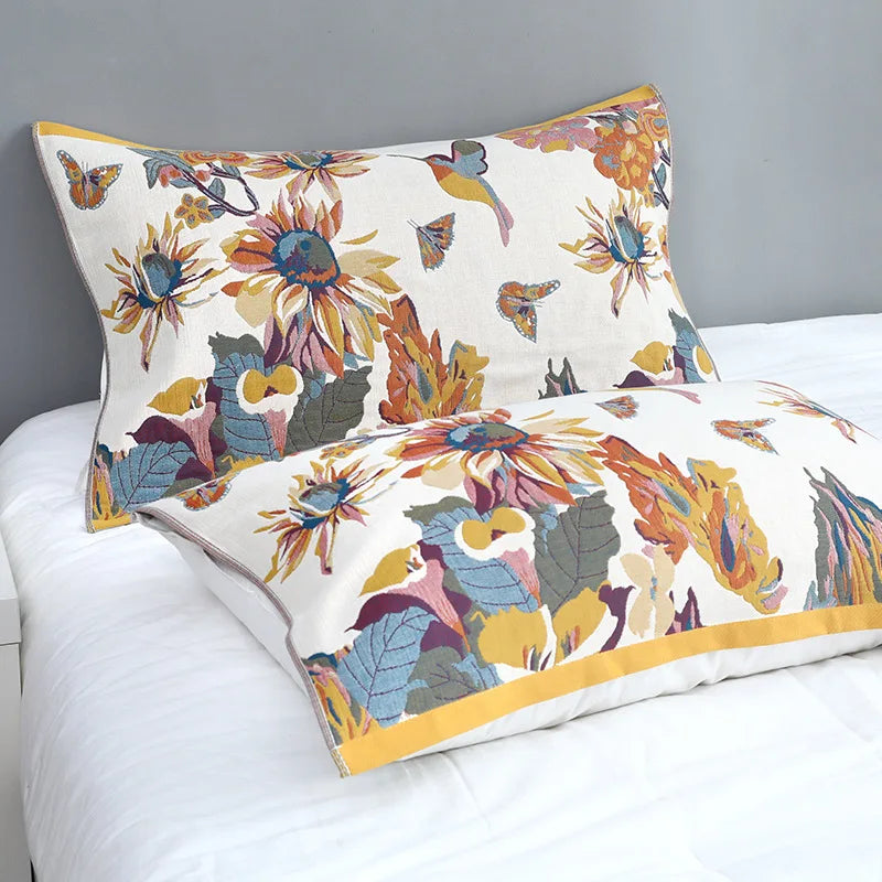 طقم بطانية ووسادة صيفية قطنية من DecorBites™ - تصميم طيور وزهور