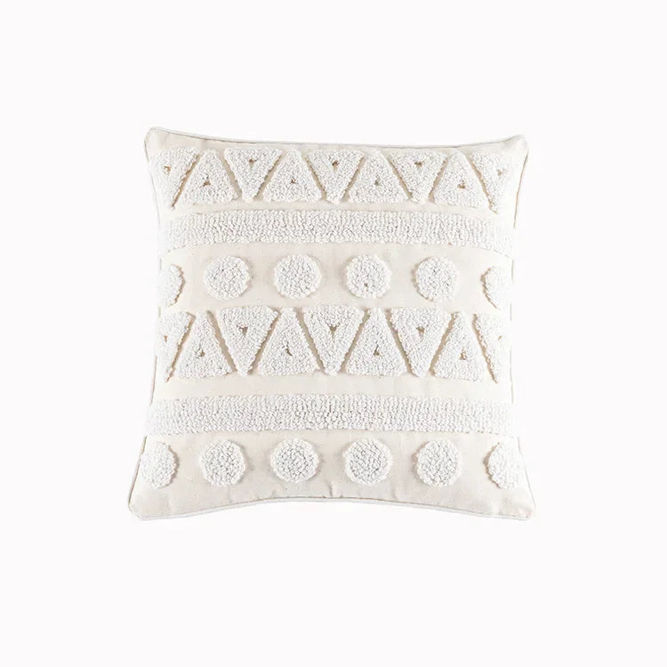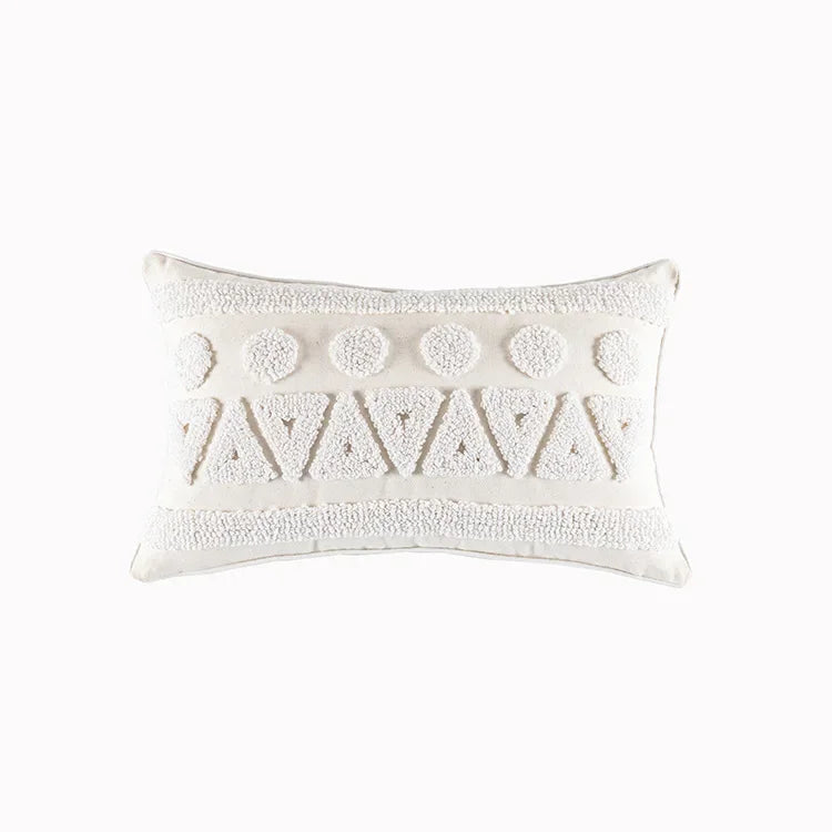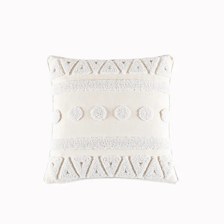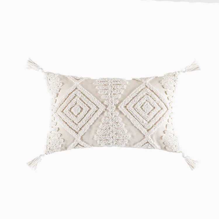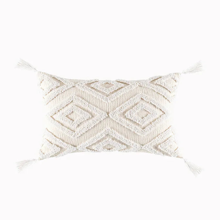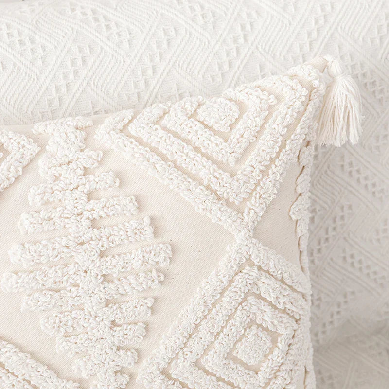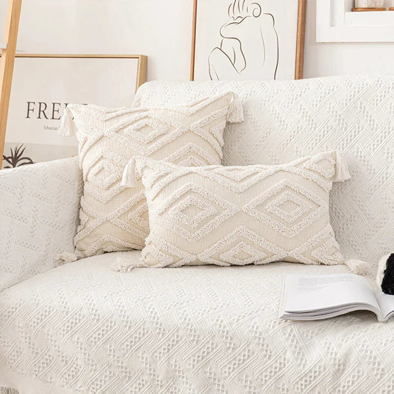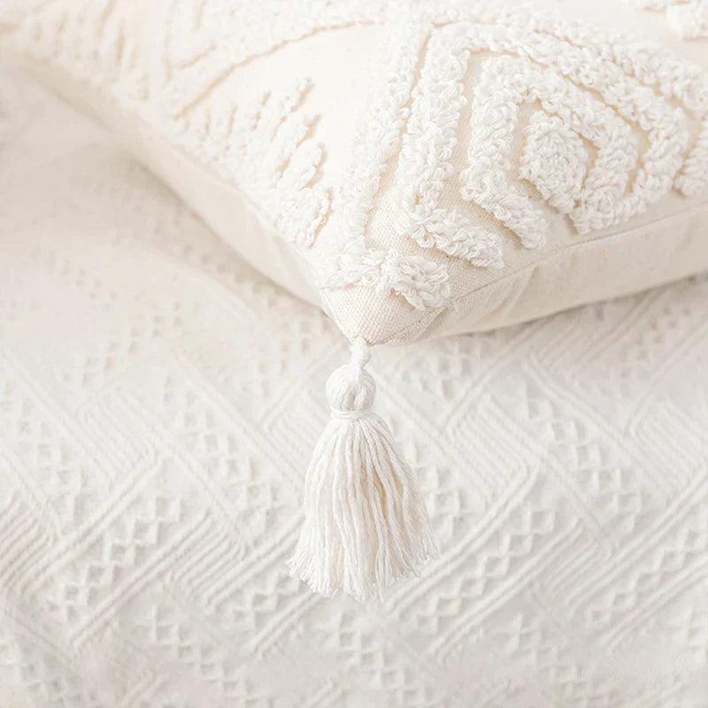 أغطية وسائد ديكوربايتس™ القطنية البيضاء المزينة بشراشيب، مقاس 45×45/30×50 سم - غطاء وسادة بتصميم هندسي مربع