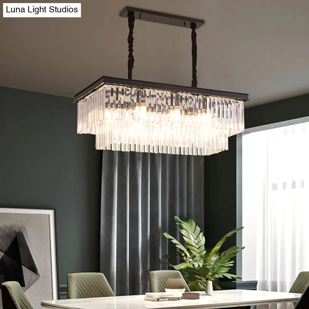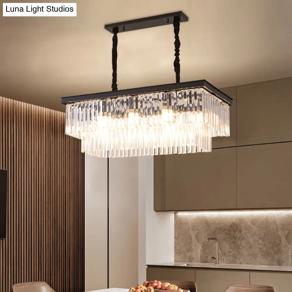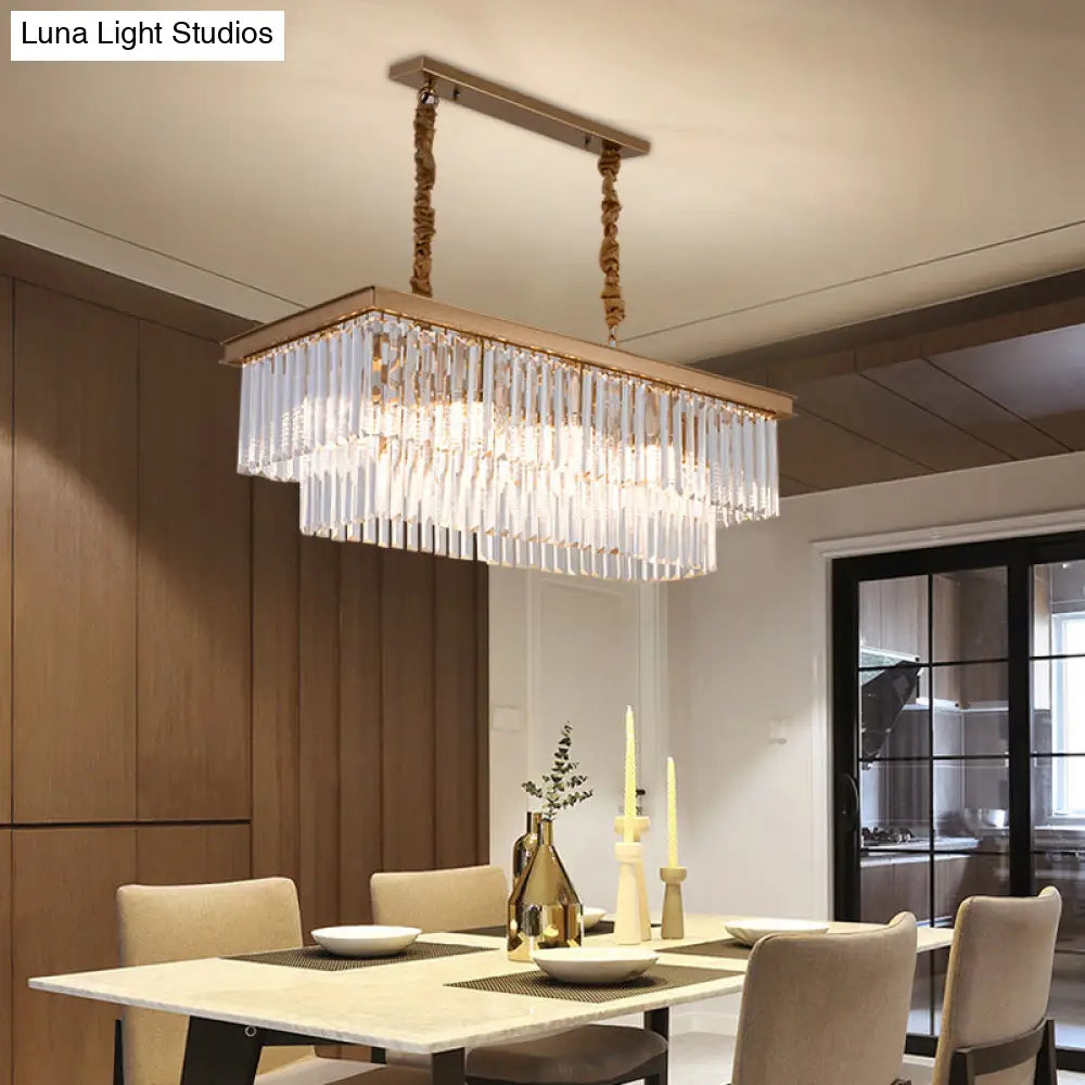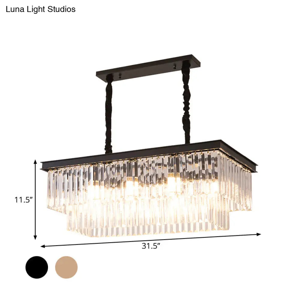 ديكوربايتس™ مصباح جزيرة غرفة الطعام الريفية مع غطاء كريستالي مستطيل - مجموعة إضاءة معلقة من 8 لمبات
