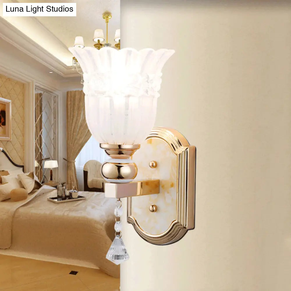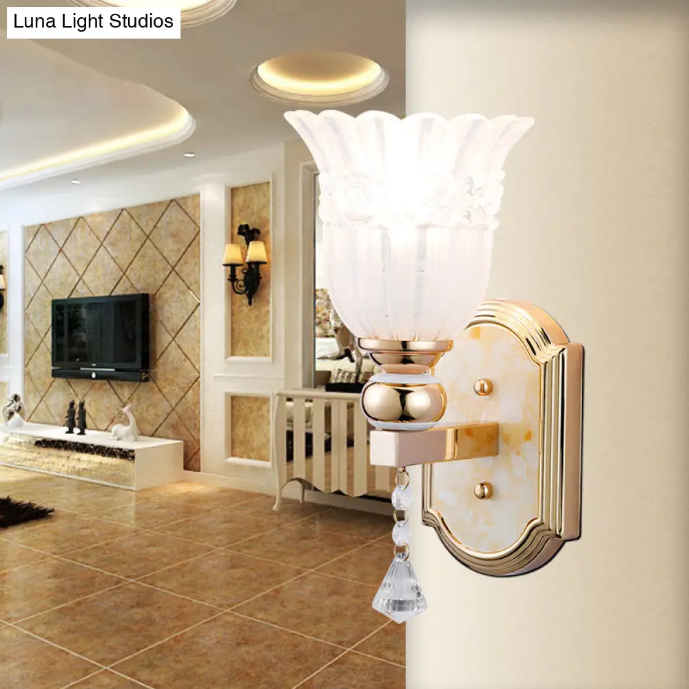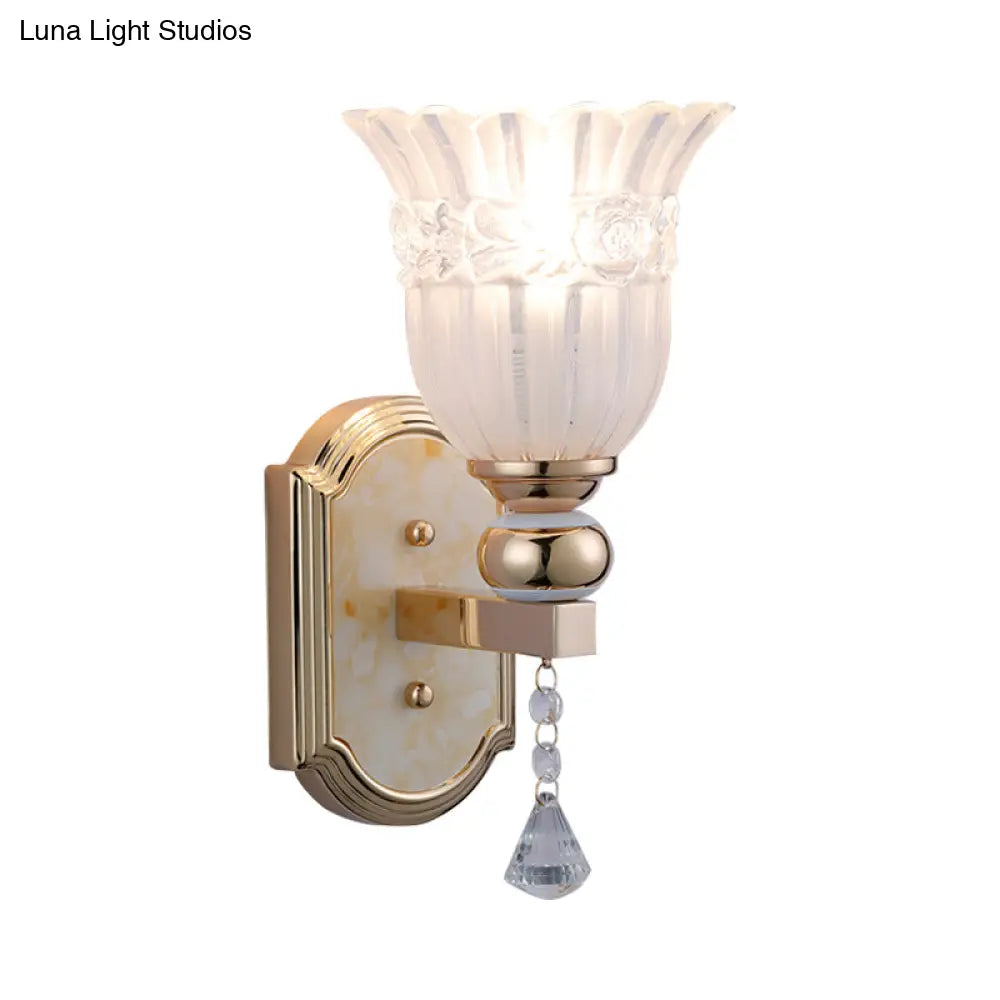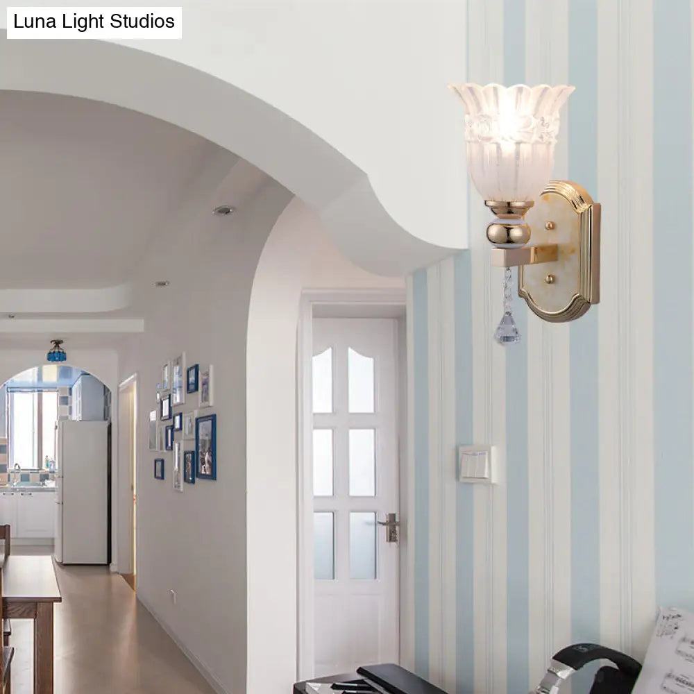 مصباح حائطي مزخرف على شكل زهور من ديكوربايتس™ بتصميم ريفي من الزجاج المصنفر - إضاءة حائطية باللون الذهبي للممر