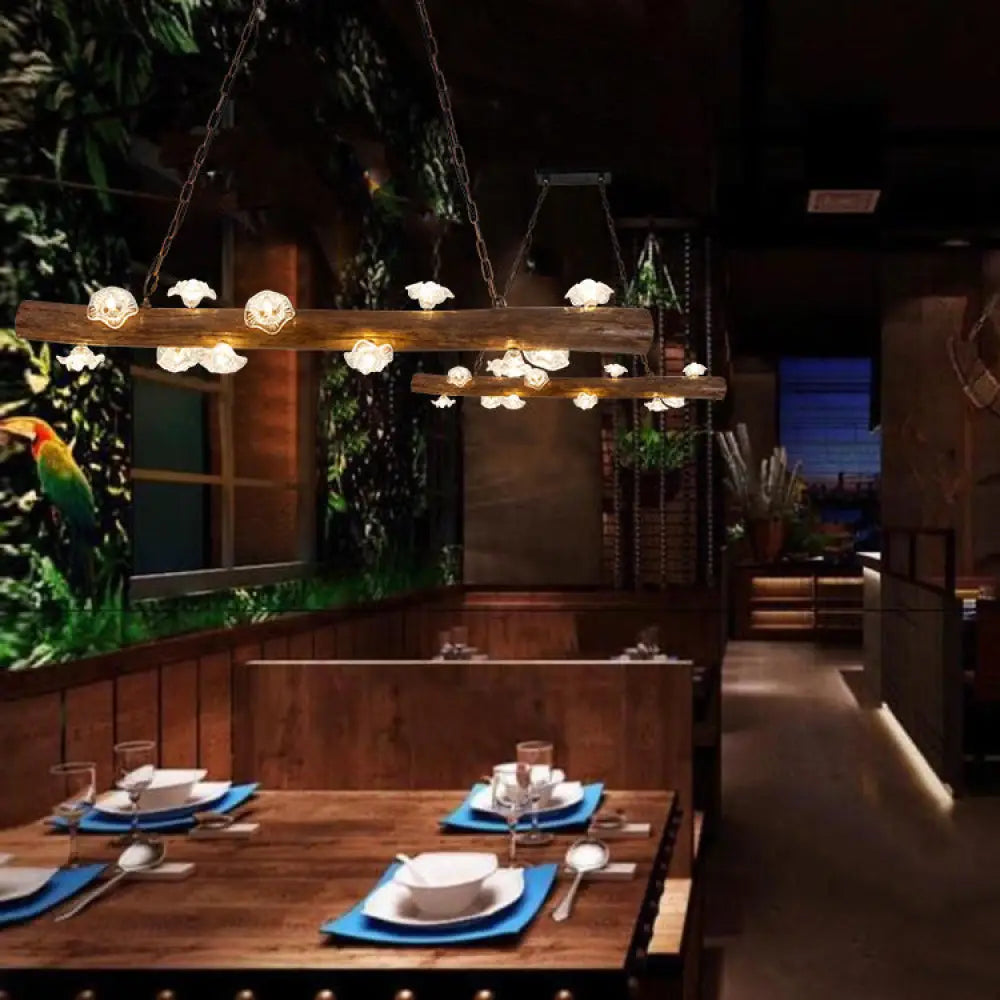 ثريا فطر على الطراز الريفي من DecorBites™ مزودة بـ 12 لمبة خشبية للإضاءة المعلقة الداخلية