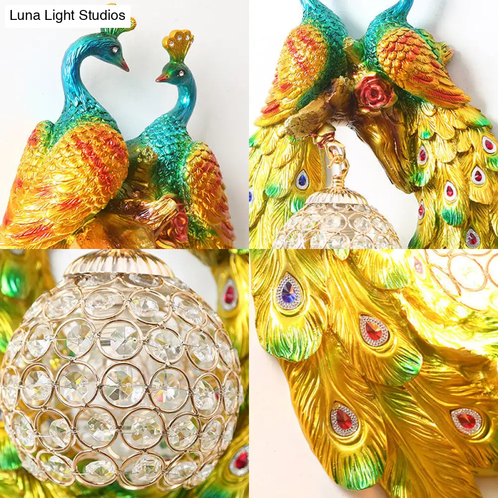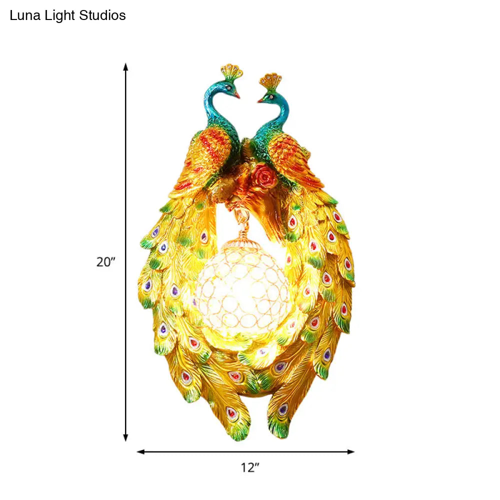 ديكوربايتس™ مصباح حائط على شكل طاووس على الطراز الريفي مع غطاء كريستالي لغرفة النوم - مصباح أصفر من الراتينج بضوء واحد