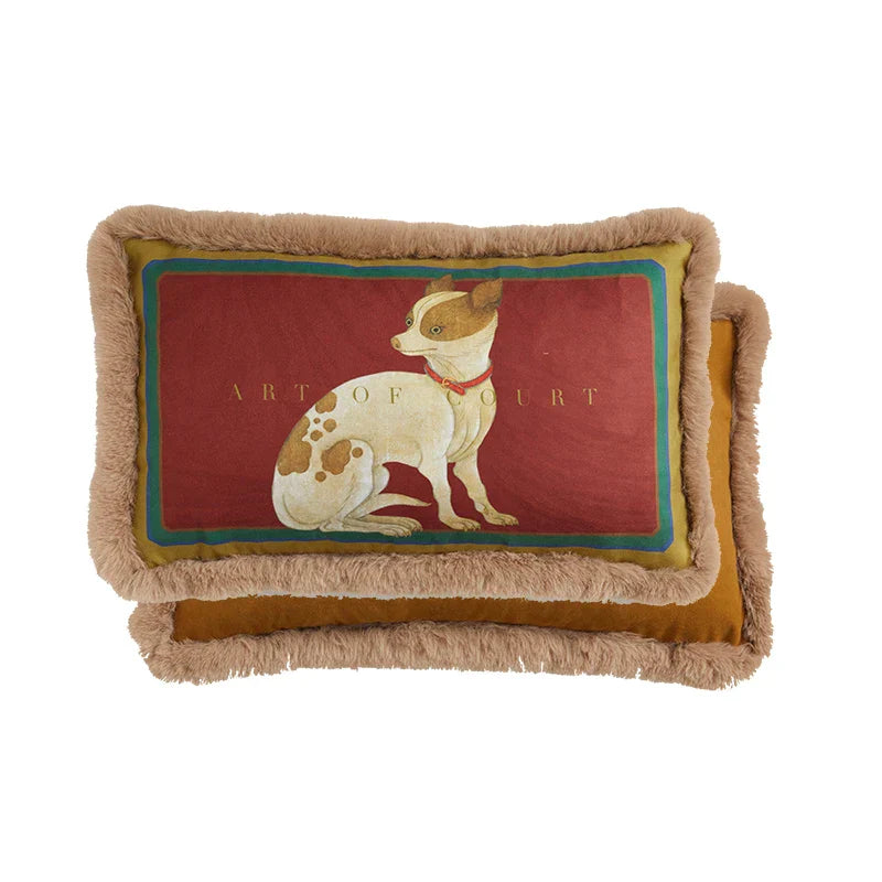 غطاء وسادة مزخرف من DecorBites™ بتصميم جرو المحكمة مع هامش من الفرو