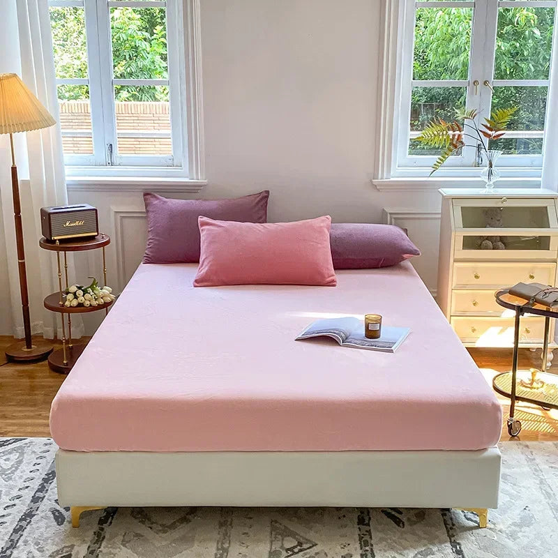 ملاءة سرير فاخرة من ديكوربايتس™ بمقاس كوين | غطاء مرتبة ناعم من الصوف المرجاني | ملاءة سرير شتوية فاخرة