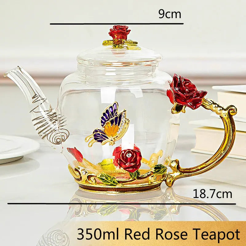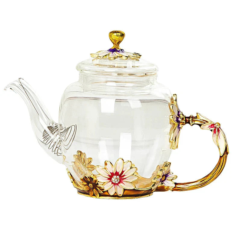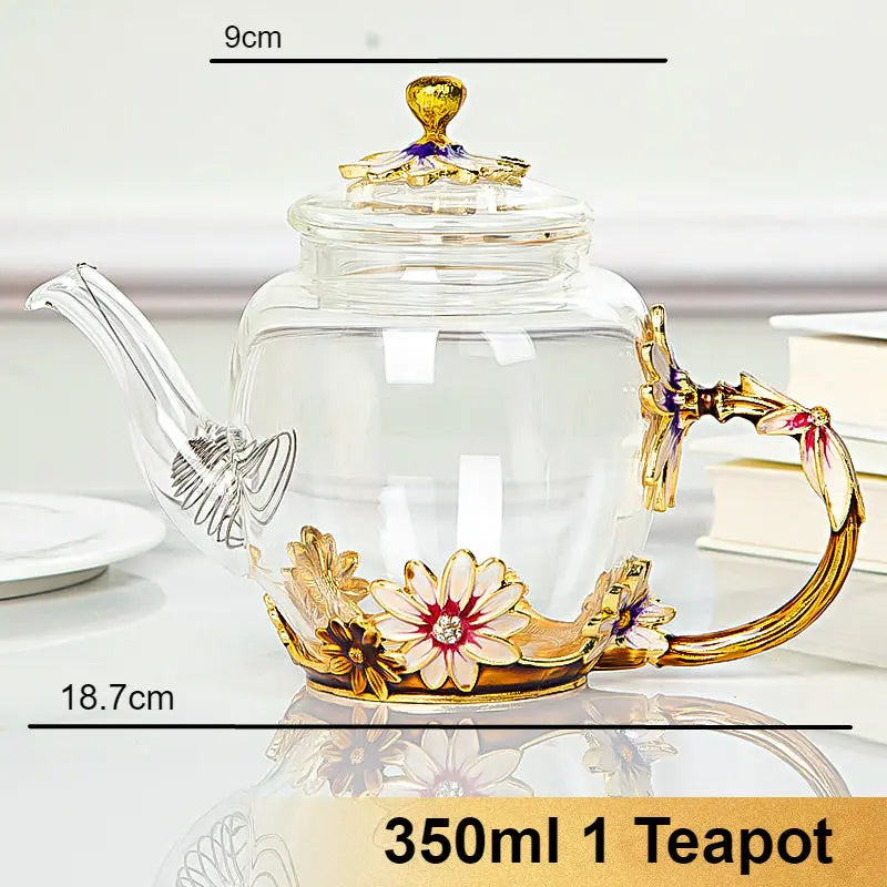 طقم إبريق شاي من الزجاج الكريستالي والمينا من ديكوربايتس™ للمشروبات الساخنة والباردة