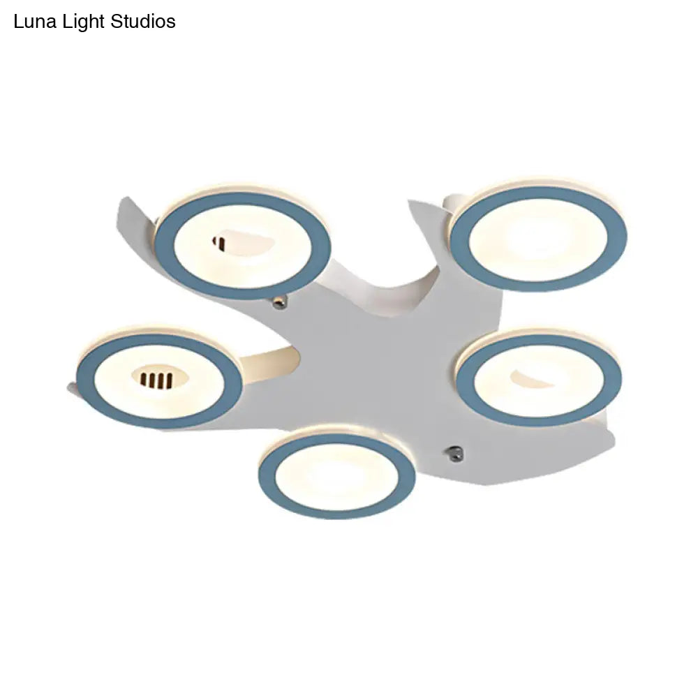 ديكوربايتس™ ديكوربايتس™ مصباح سقف LED أزرق نورديك مع 5 حلقات أكريليك ومظلة حديدية لغرفة النوم