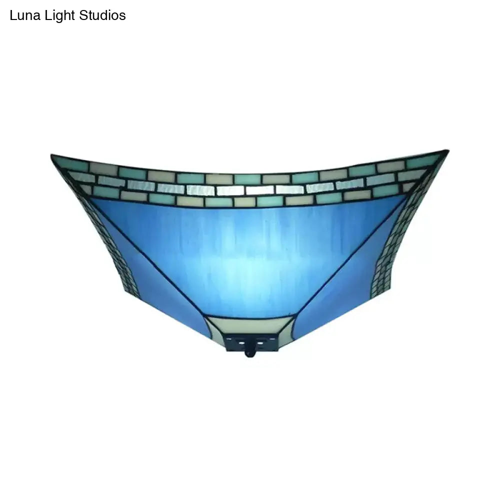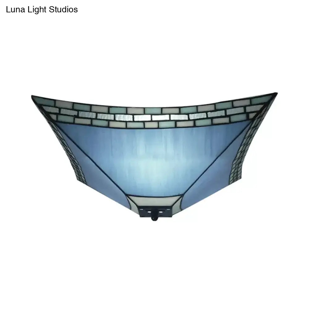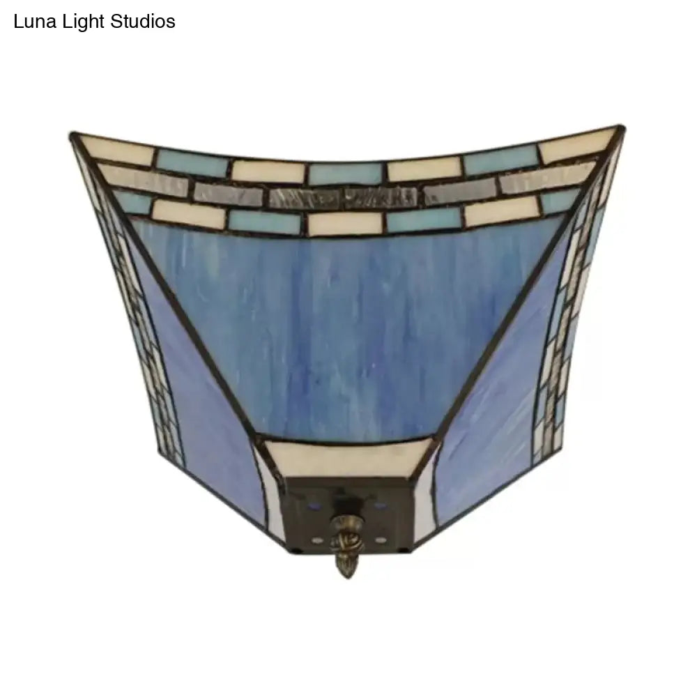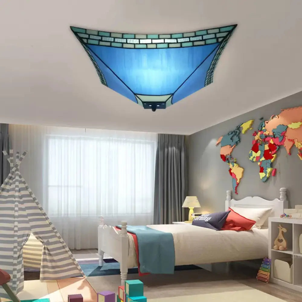 ديكوربايتس™ ديكوربايتس™ مصباح سقف من الزجاج الملون باللون الأزرق: تركيب مسطح مع غطاء هرمي على طراز تيفاني - مثالي لغرفة المعيشة
