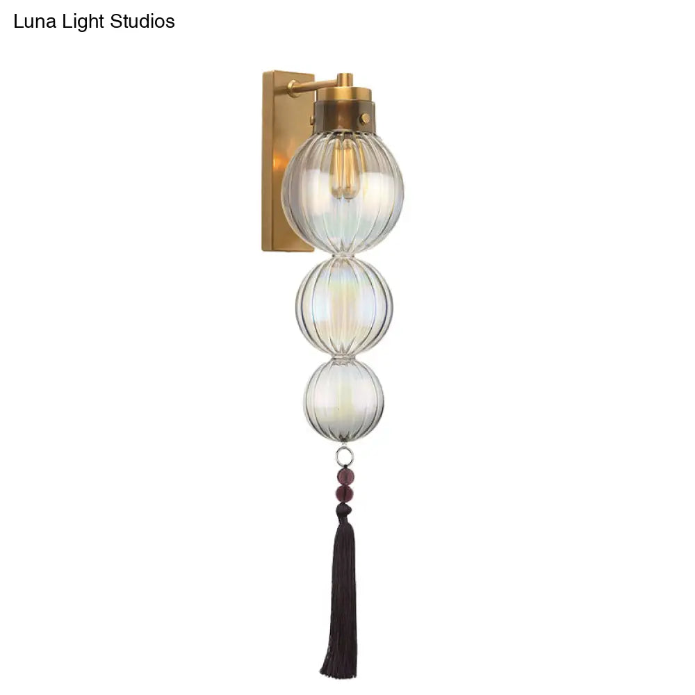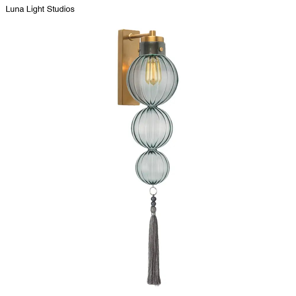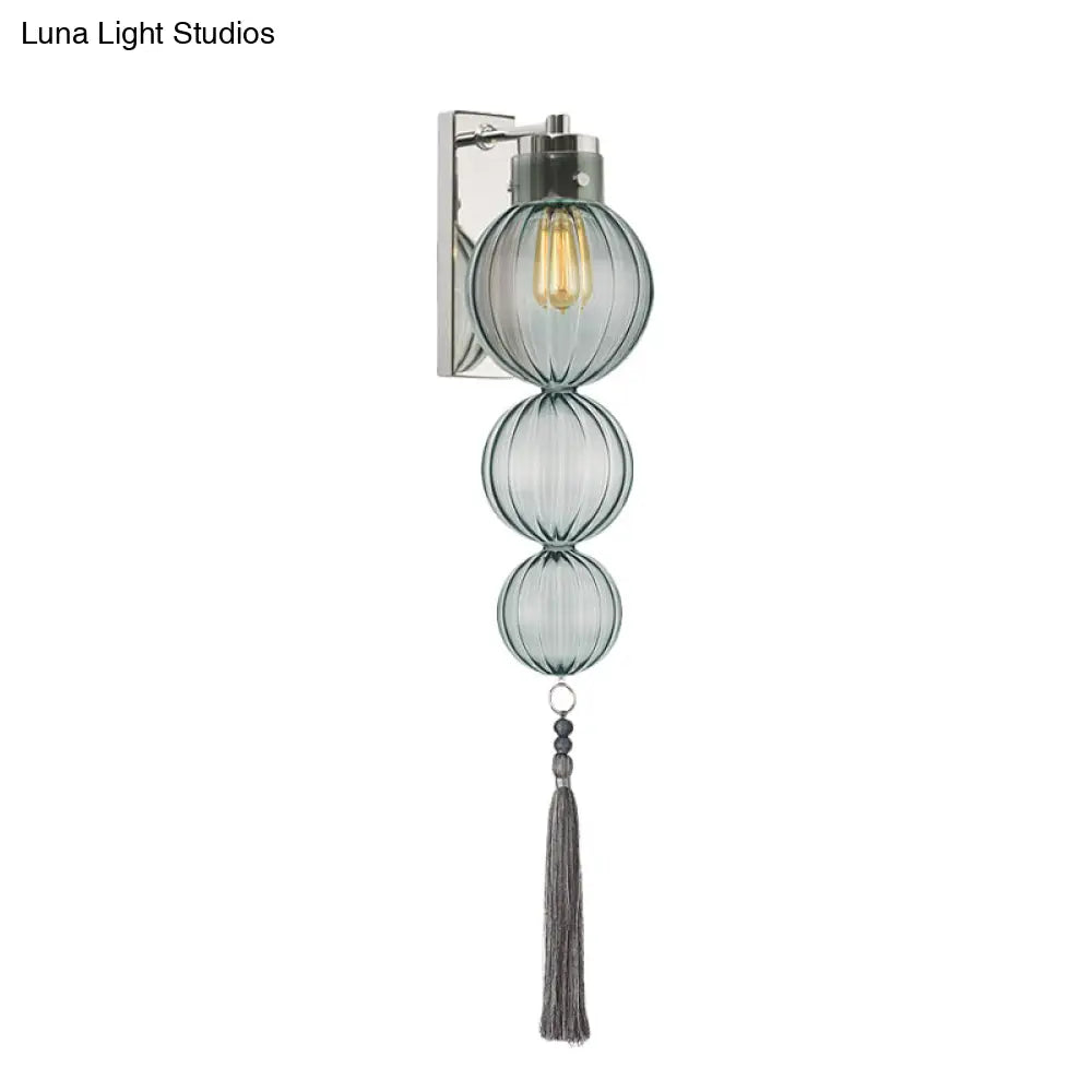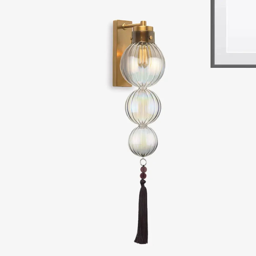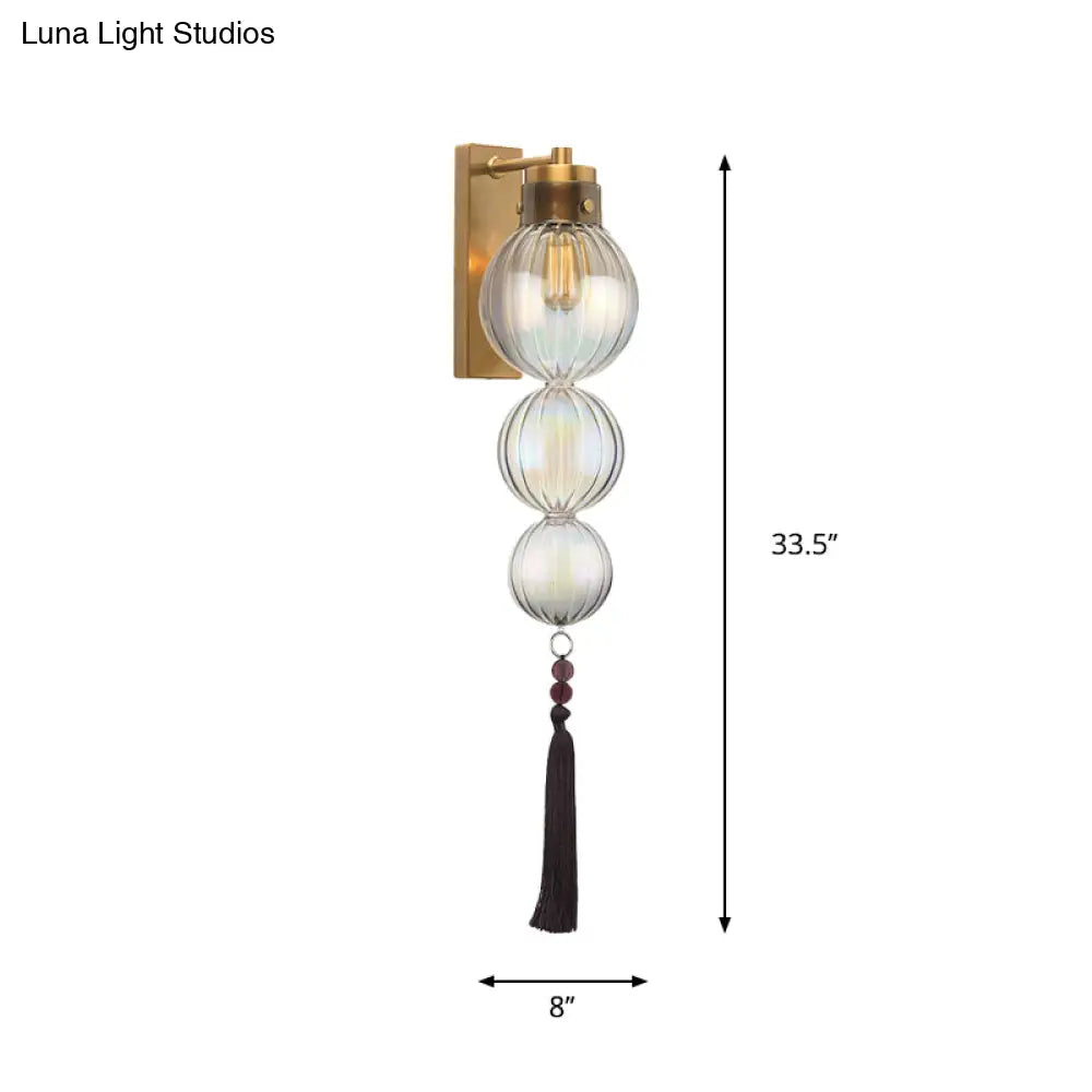 ديكوربايتس™ ديكوربايتس™ مصباح حائط كروي من النحاس/الكروم على الطراز الصيني - شفاف/كهرماني/أزرق فاتح، مع عقدة شرابة