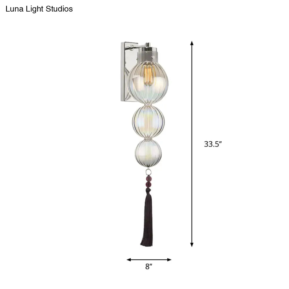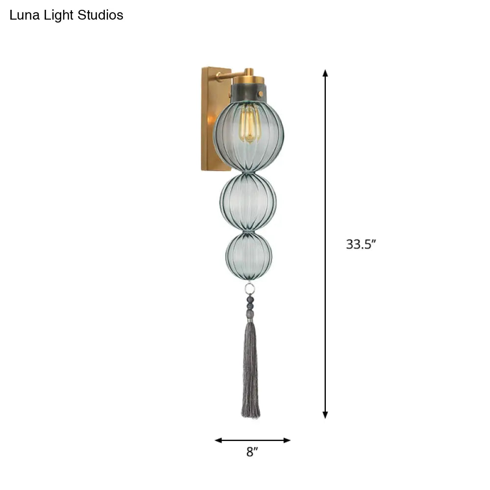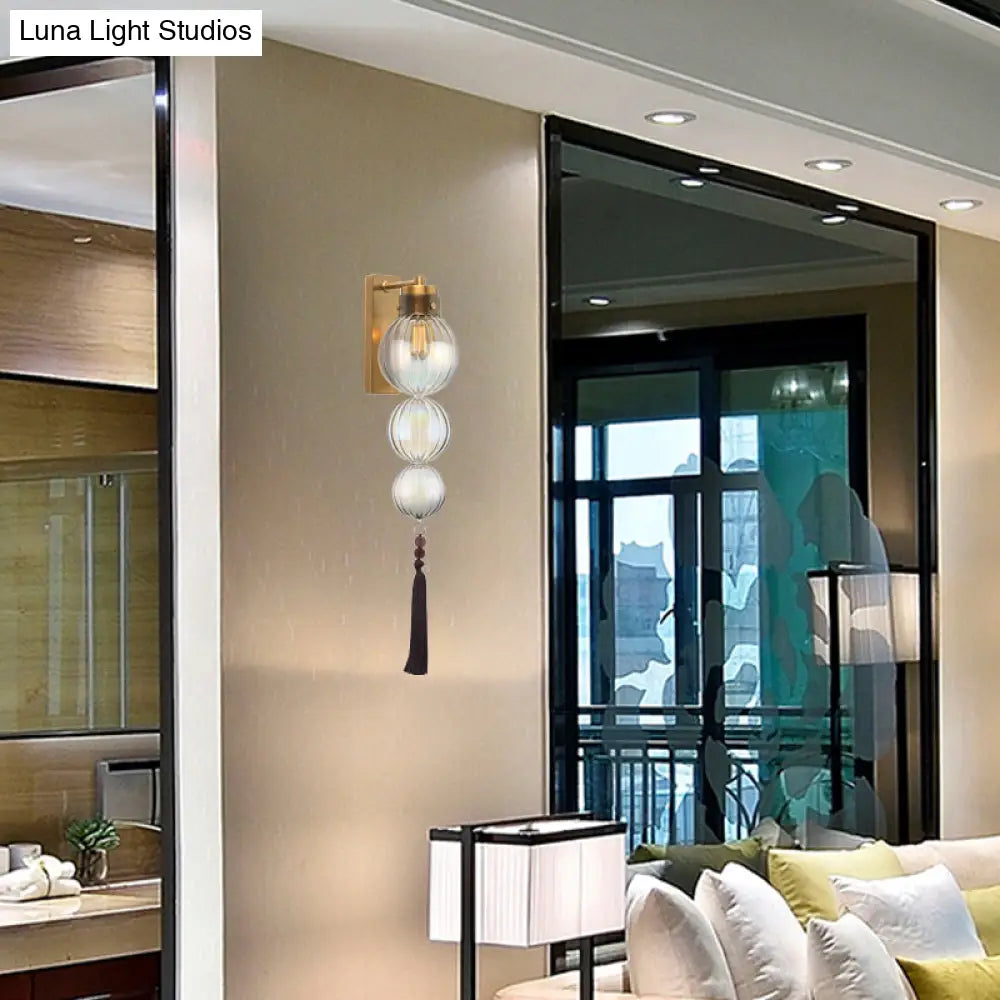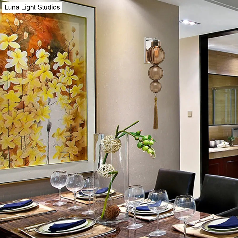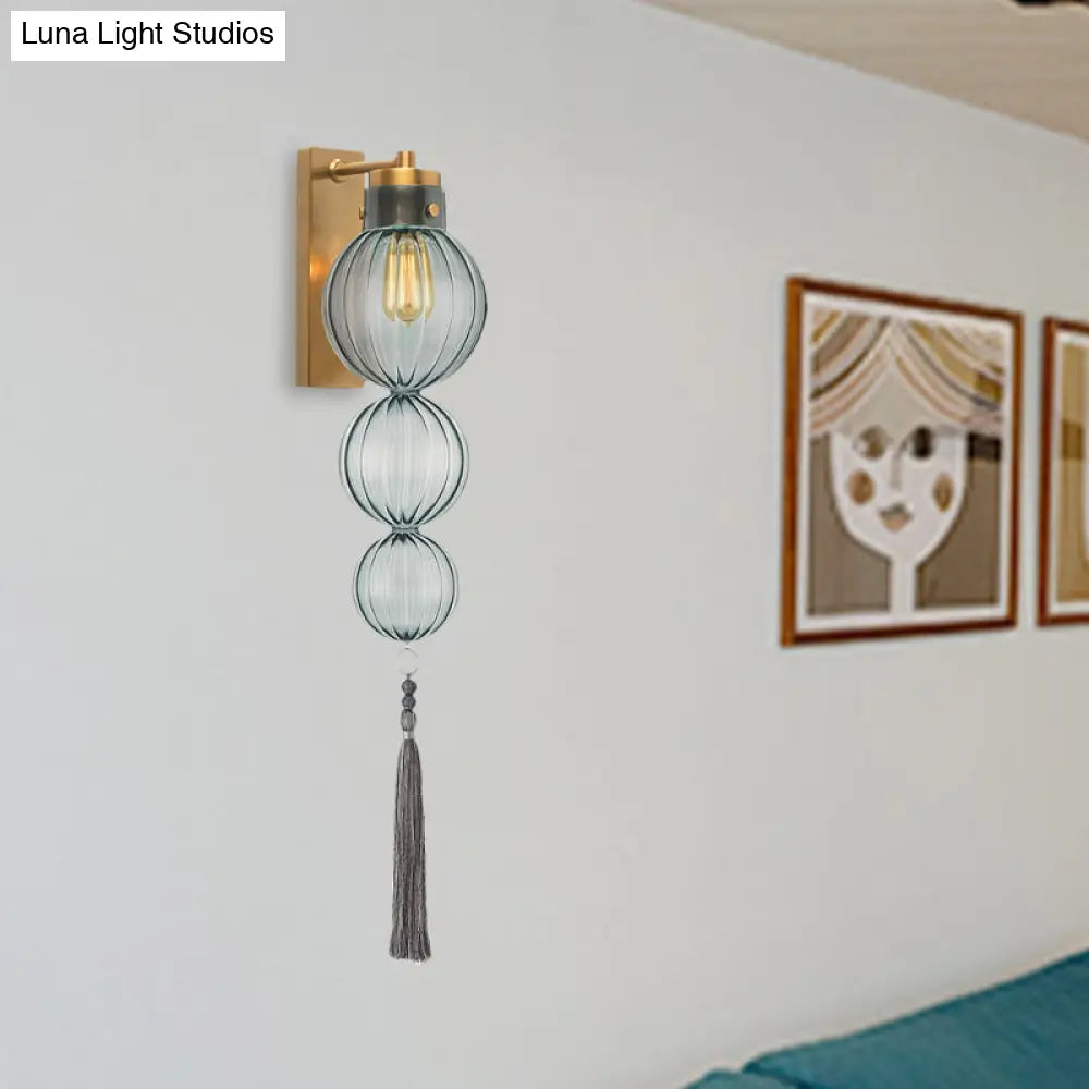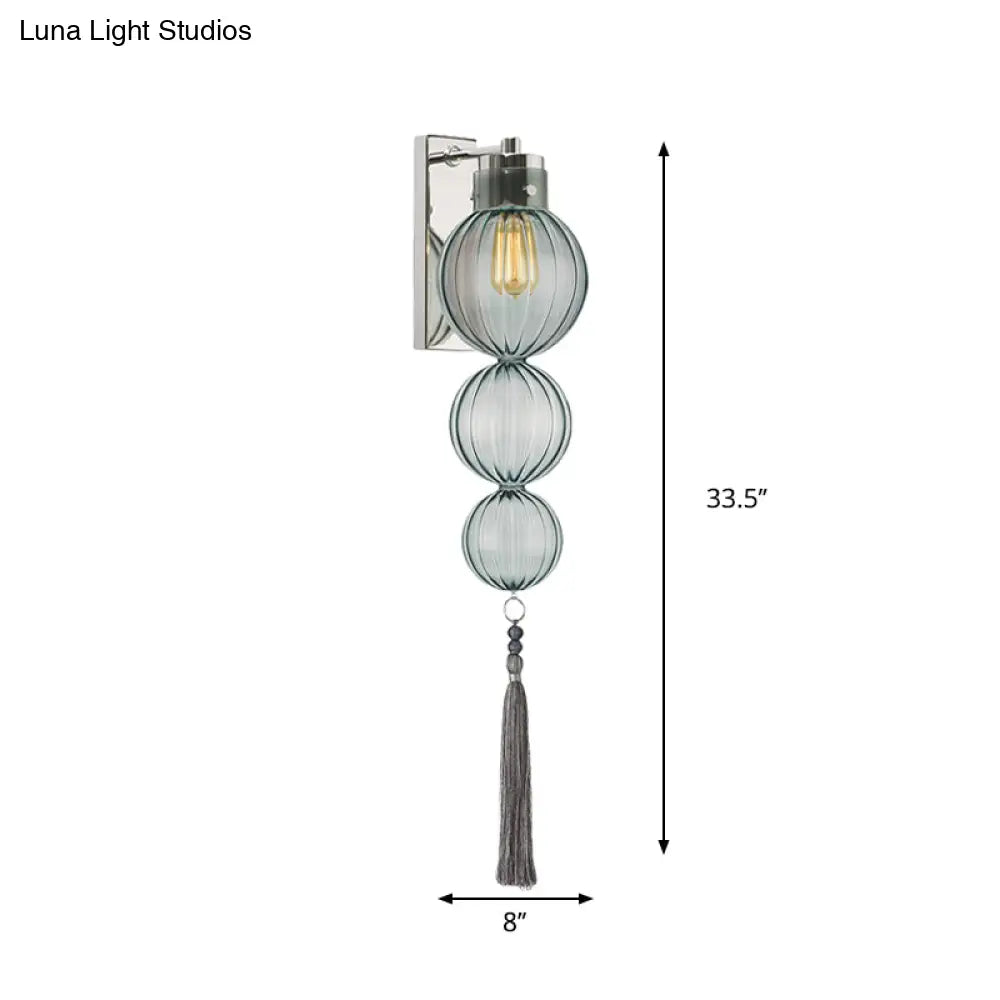 ديكوربايتس™ ديكوربايتس™ مصباح حائط كروي من النحاس/الكروم على الطراز الصيني - شفاف/كهرماني/أزرق فاتح، مع عقدة شرابة