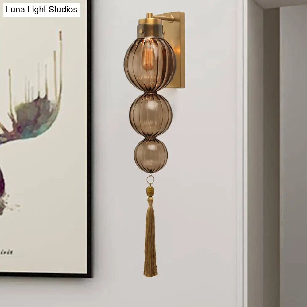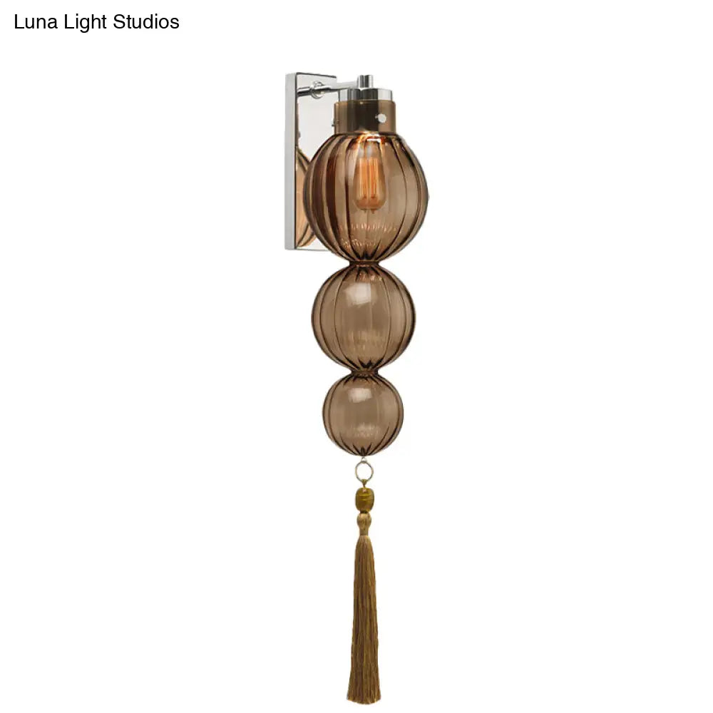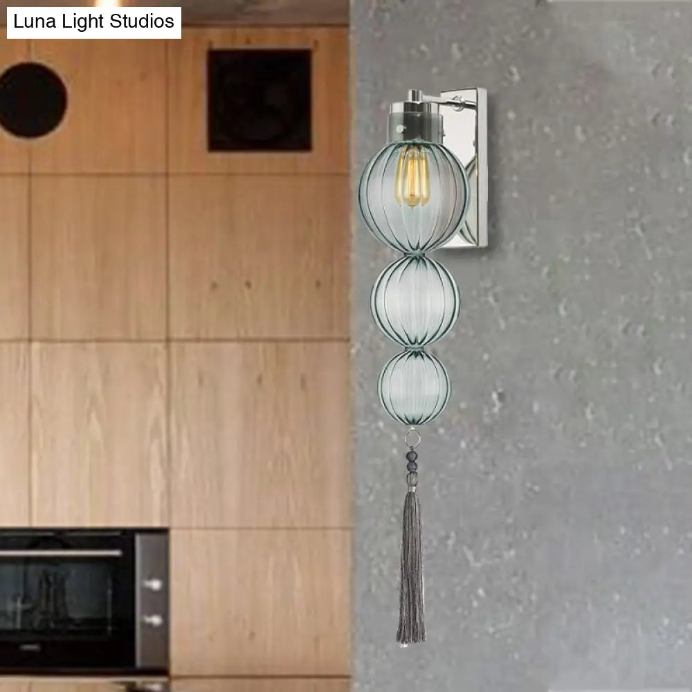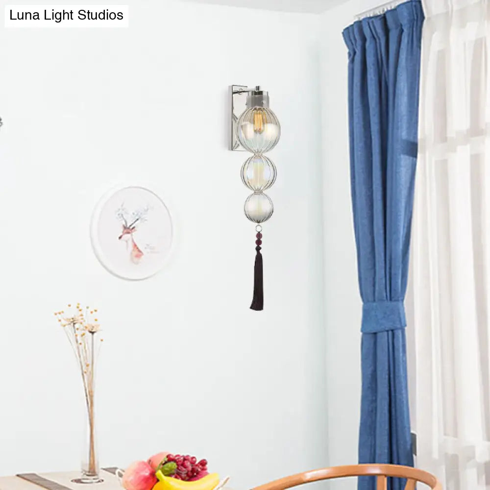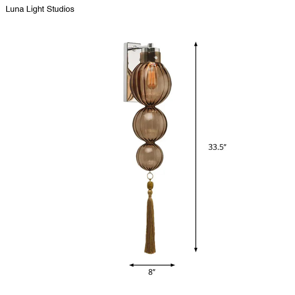 ديكوربايتس™ ديكوربايتس™ مصباح حائط كروي من النحاس/الكروم على الطراز الصيني - شفاف/كهرماني/أزرق فاتح، مع عقدة شرابة