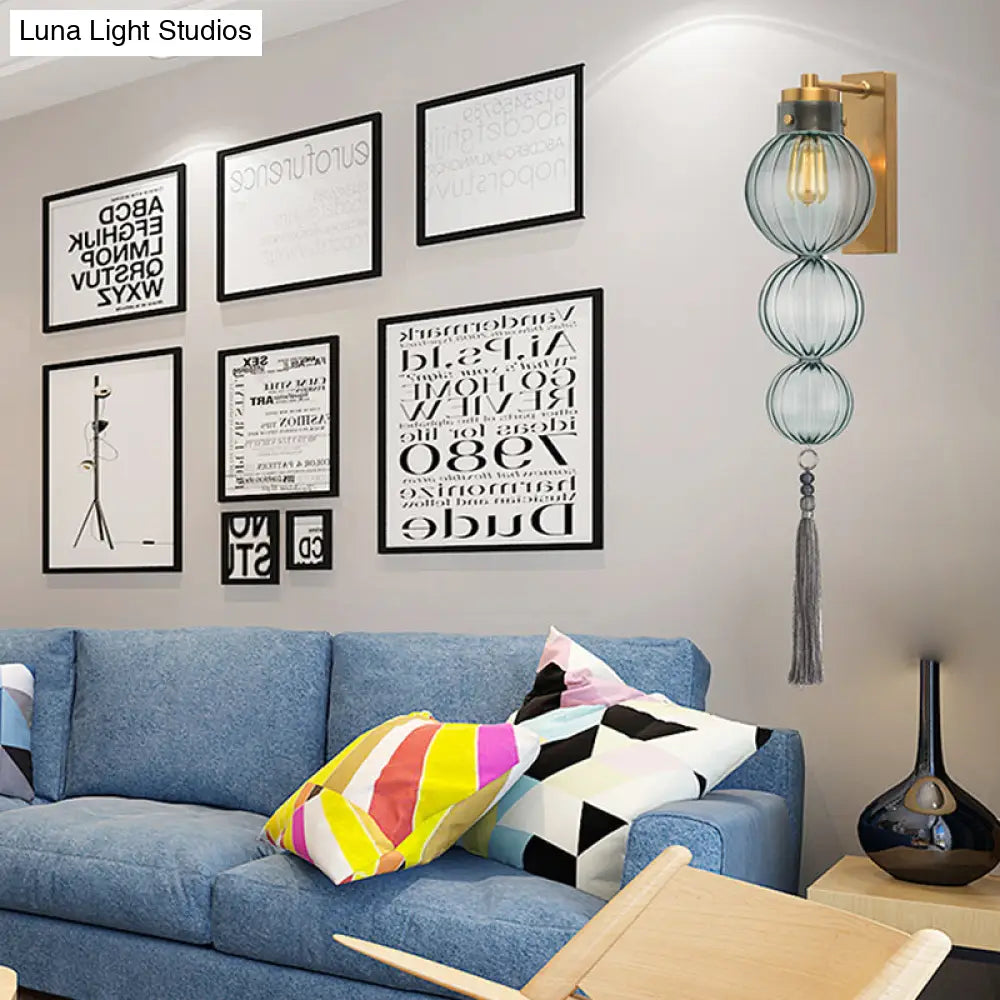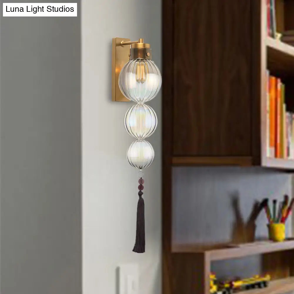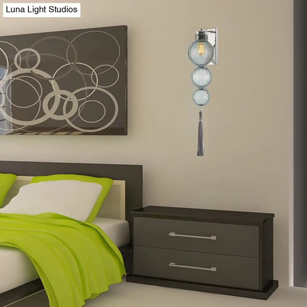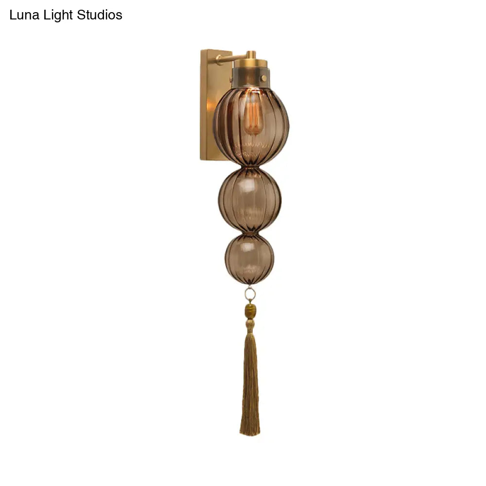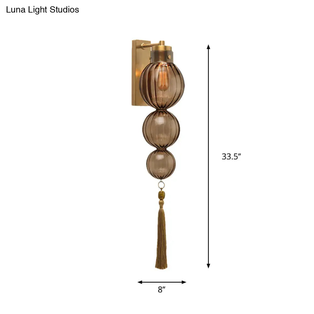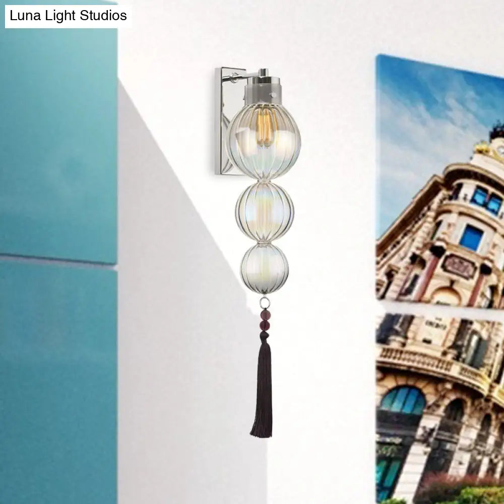 ديكوربايتس™ ديكوربايتس™ مصباح حائط كروي من النحاس/الكروم على الطراز الصيني - شفاف/كهرماني/أزرق فاتح، مع عقدة شرابة