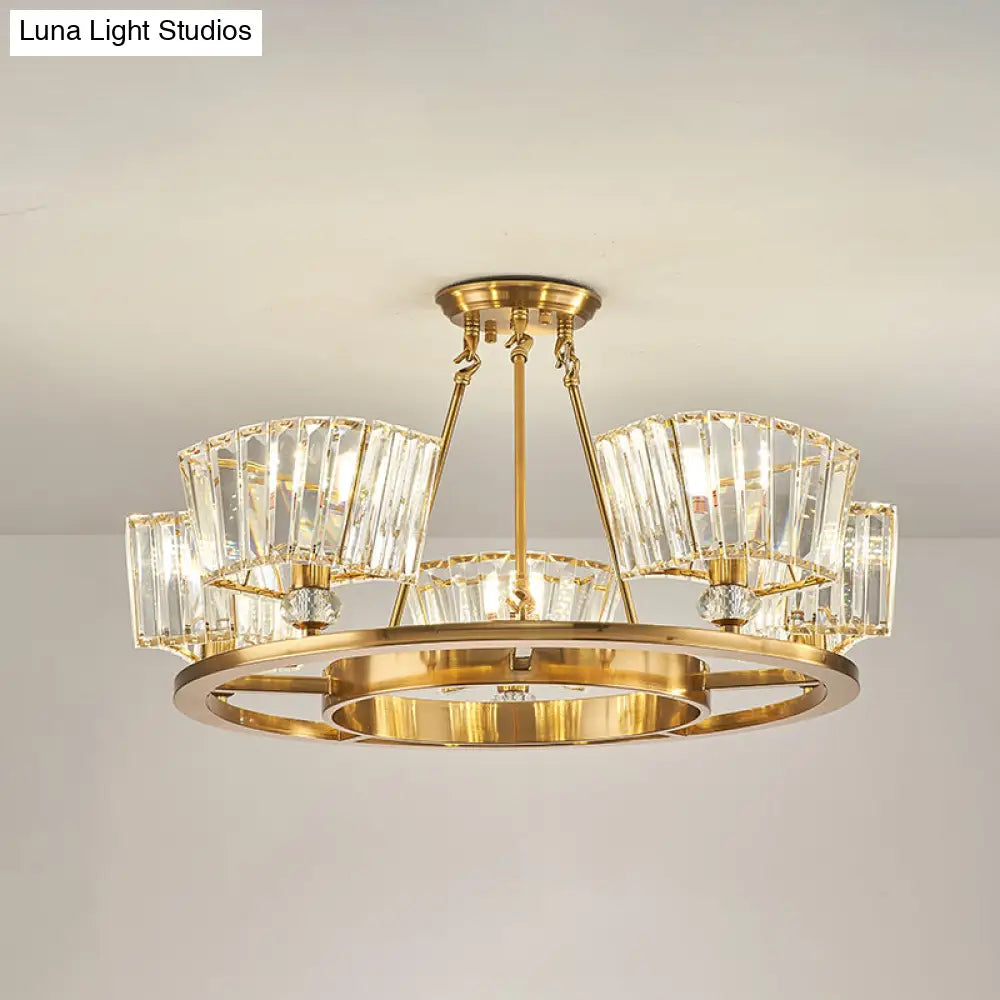 ديكوربايتس™ - وحدة سقف شبه مستوية معاصرة باللون الذهبي مع غطاء زجاجي شفاف - 5 لمبات، تصميم حلقي