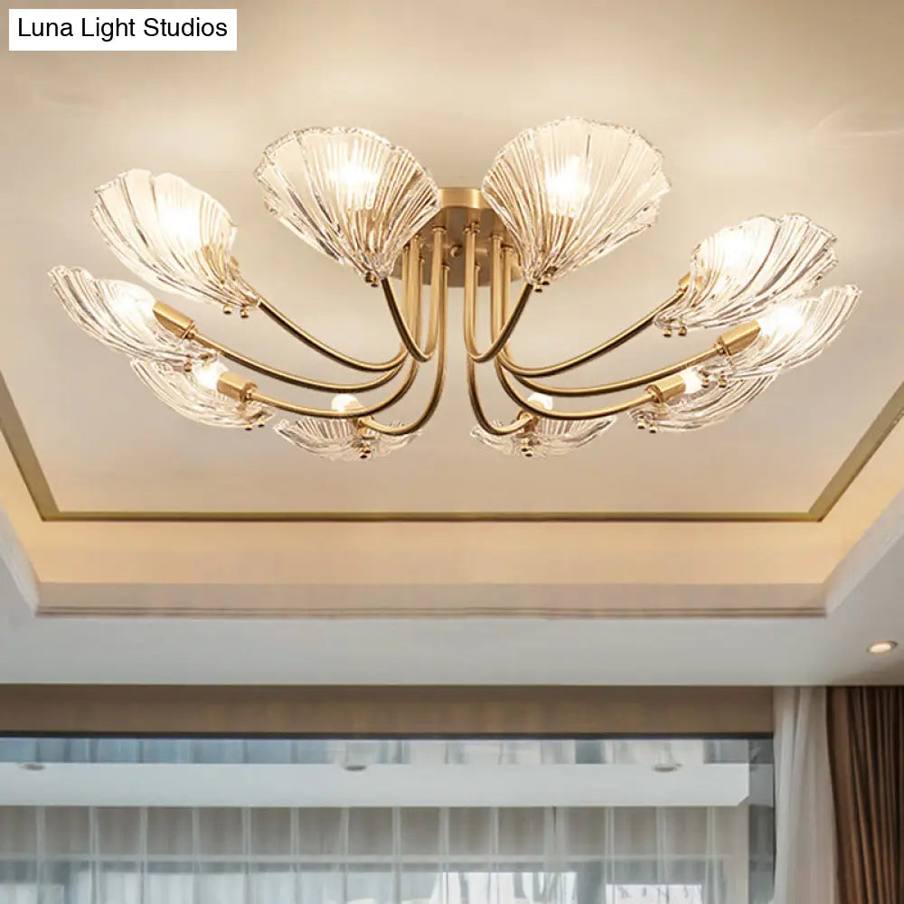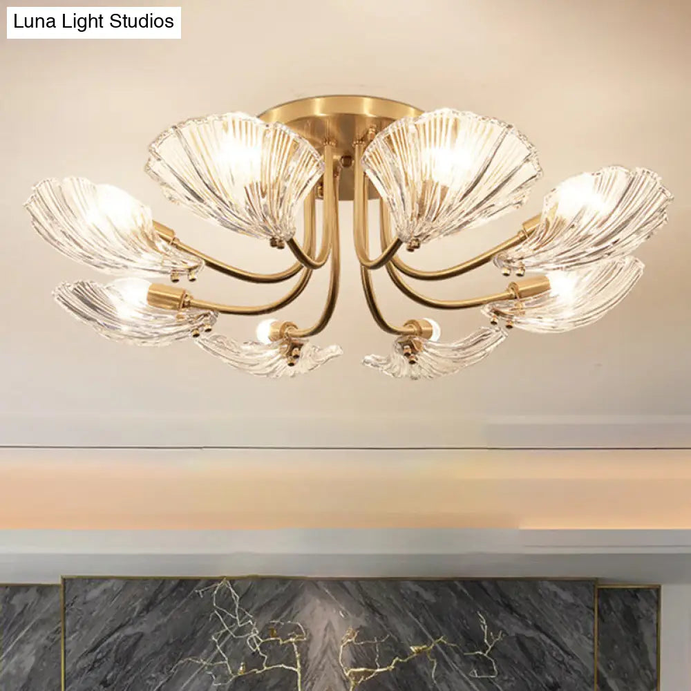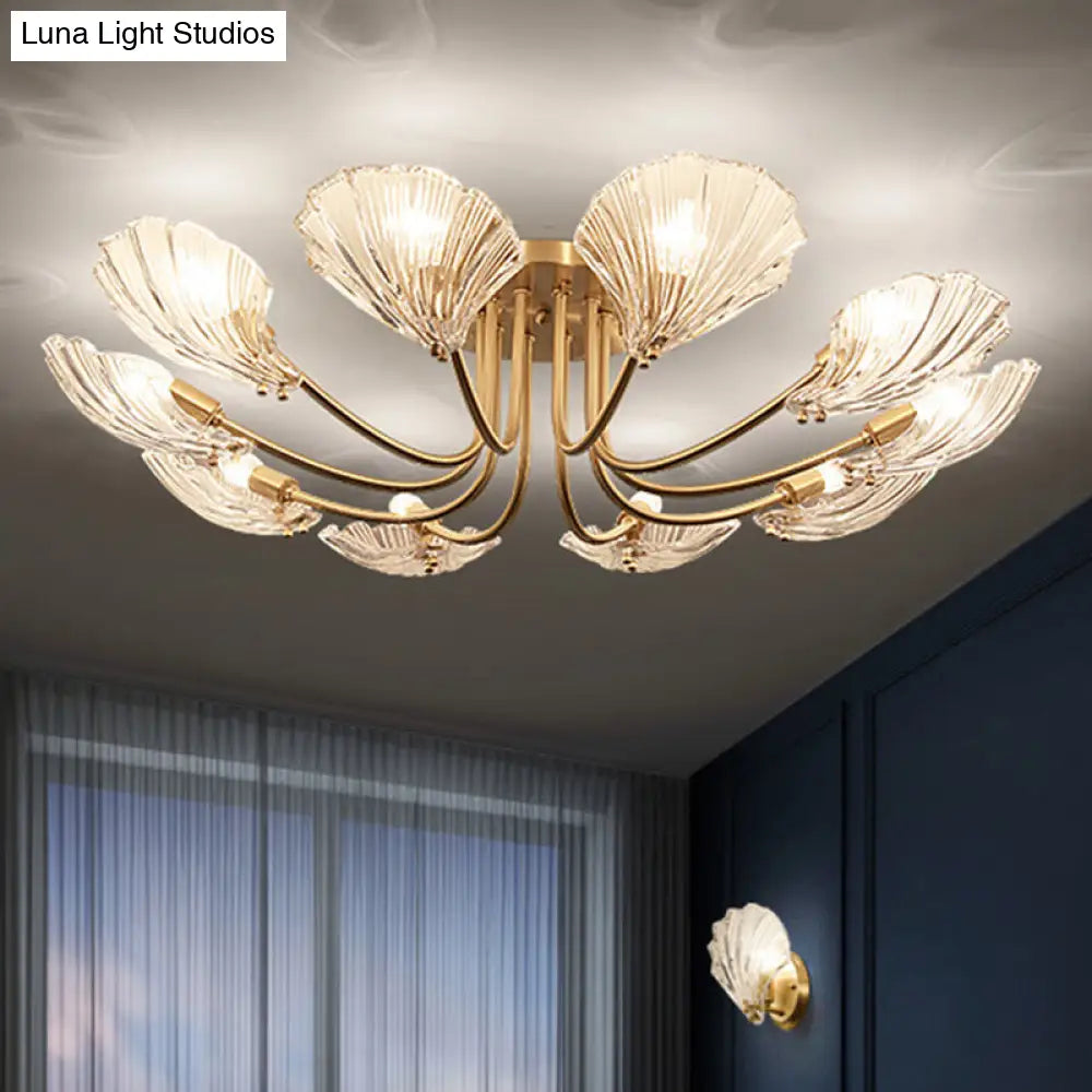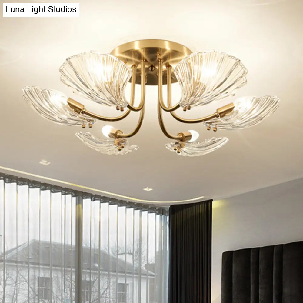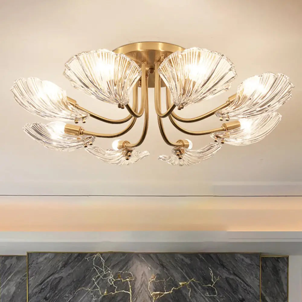 ديكوربايتس™ ديكوربايتس™ مصباح سقف شبه مدمج باللون الذهبي المعاصر مع شكل صدفي من الكريستال الشفاف