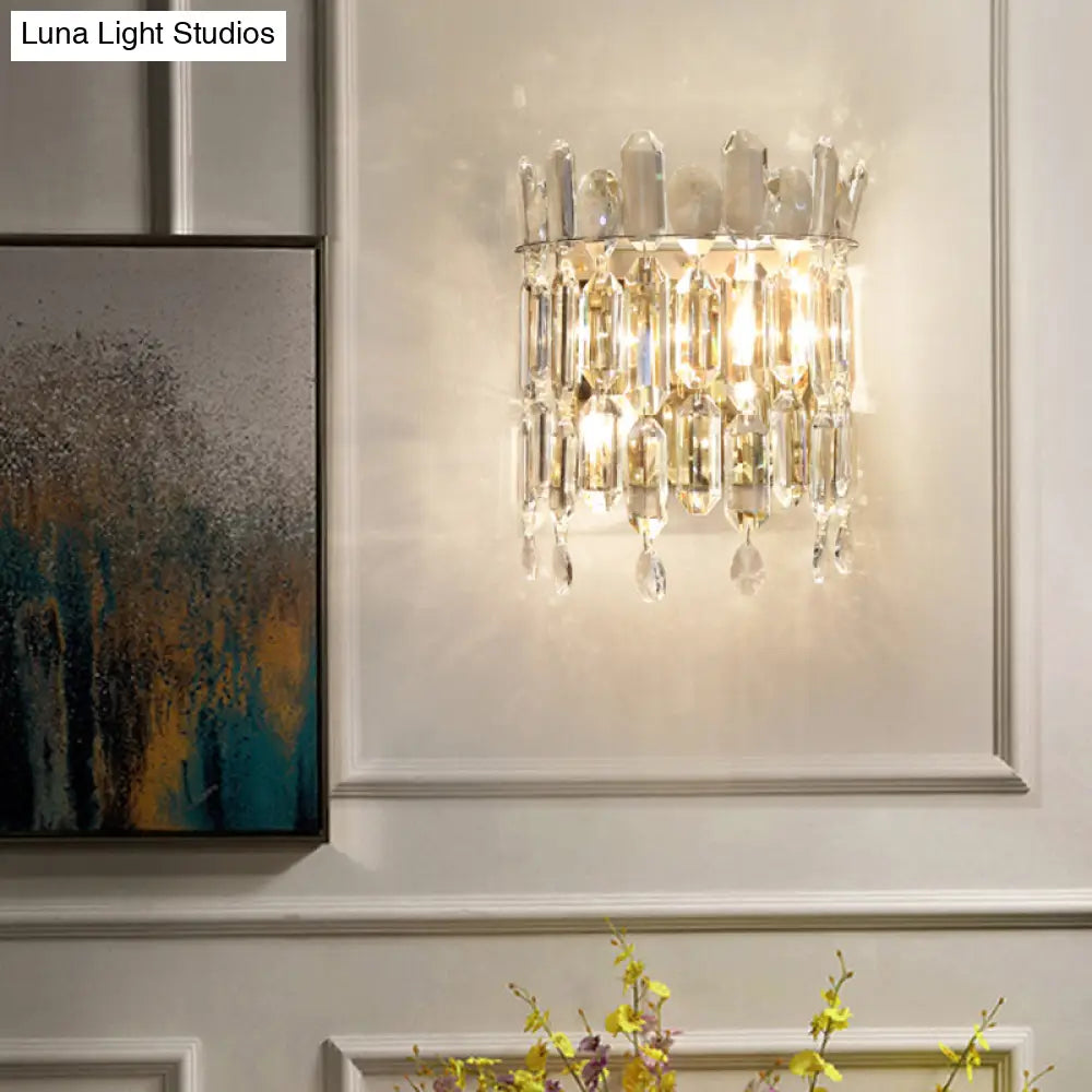 ديكوربايتس™ ديكوربايتس™ شمعدان حائطي من الكريستال بتصميم تاج بسيط - وحدة إضاءة غرفة نوم بمصباحين