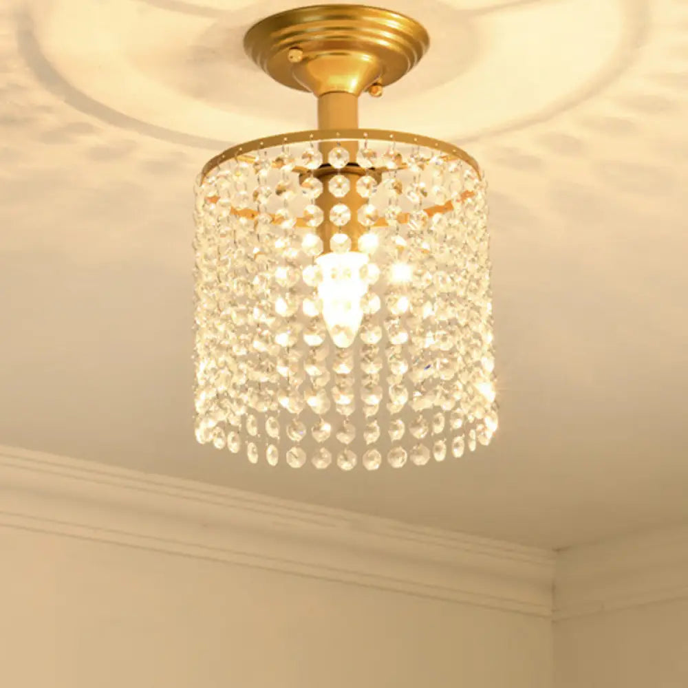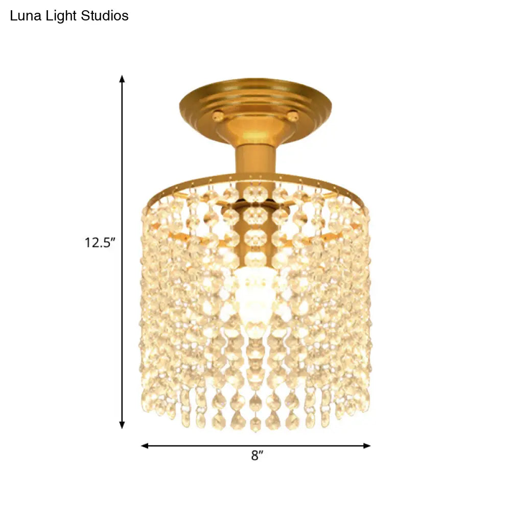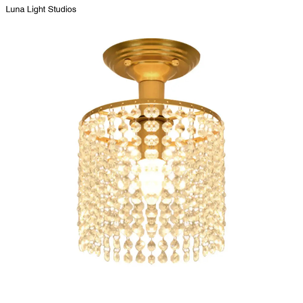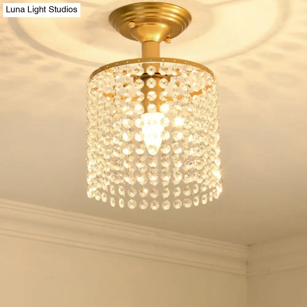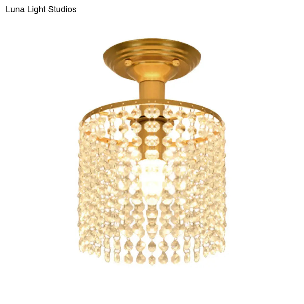 ديكوربايتس™ ديكوربايتس™ مصباح كريستال ستراند شبه مسطح بضوء واحد ذهبي - تصميم أسطواني بسيط للإضاءة القريبة من السقف