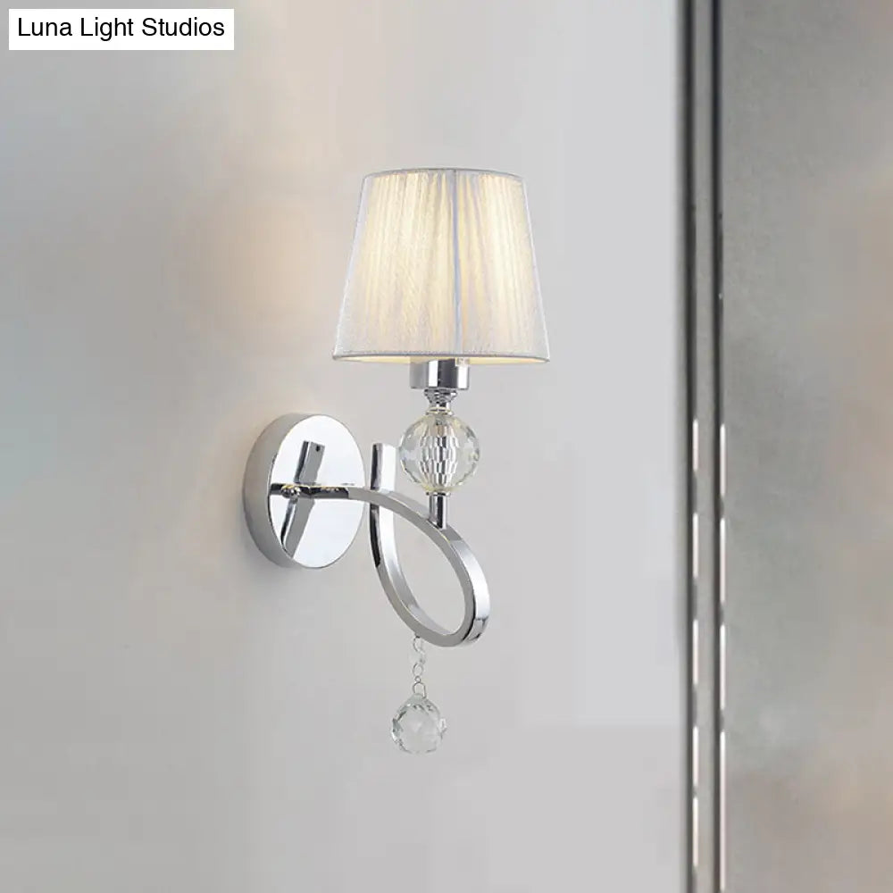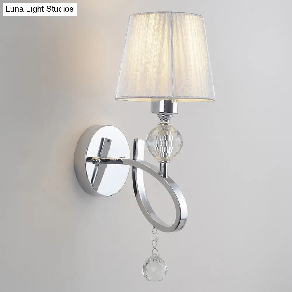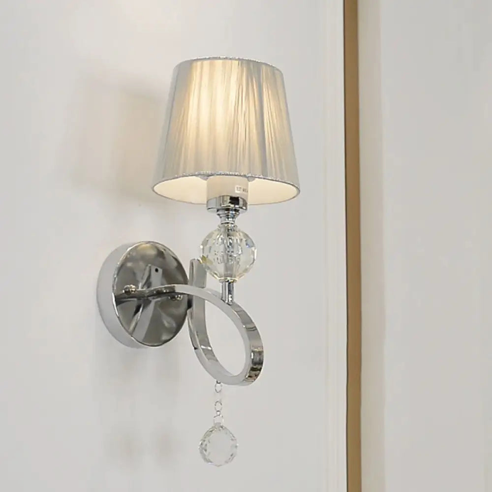 ديكور بايتس™ ديكور بايتس™ مصباح حائط لغرفة النوم الحديثة: مصباح حائط مخروطي من القماش برأس واحد مع كرة كريستال شفافة مزخرفة - فضي