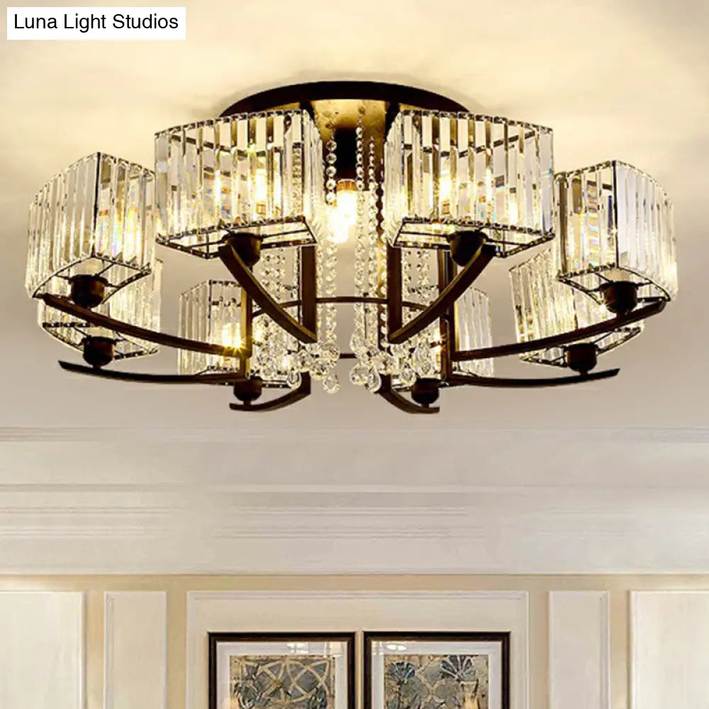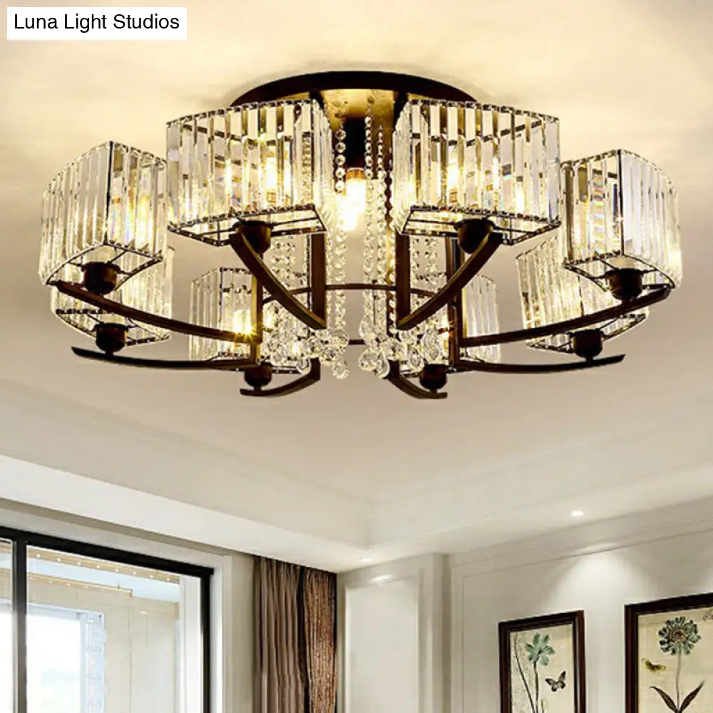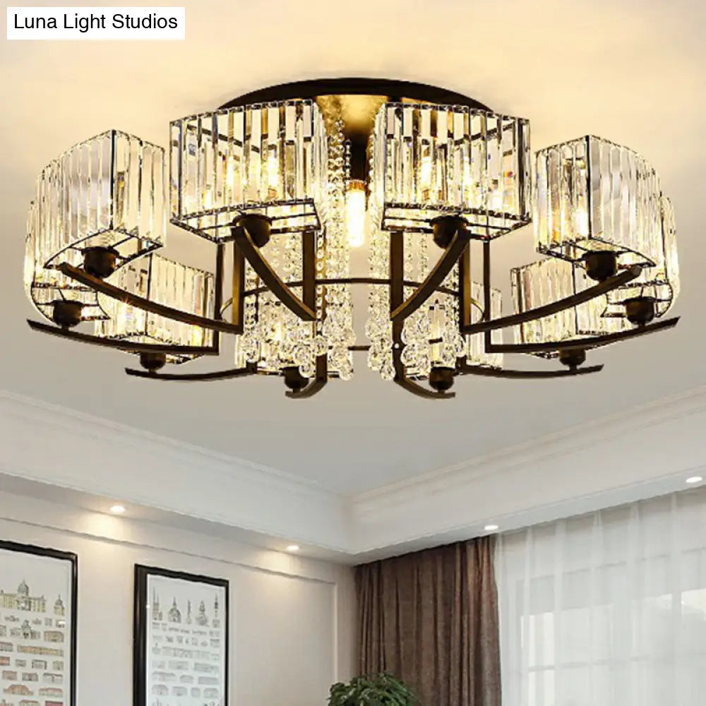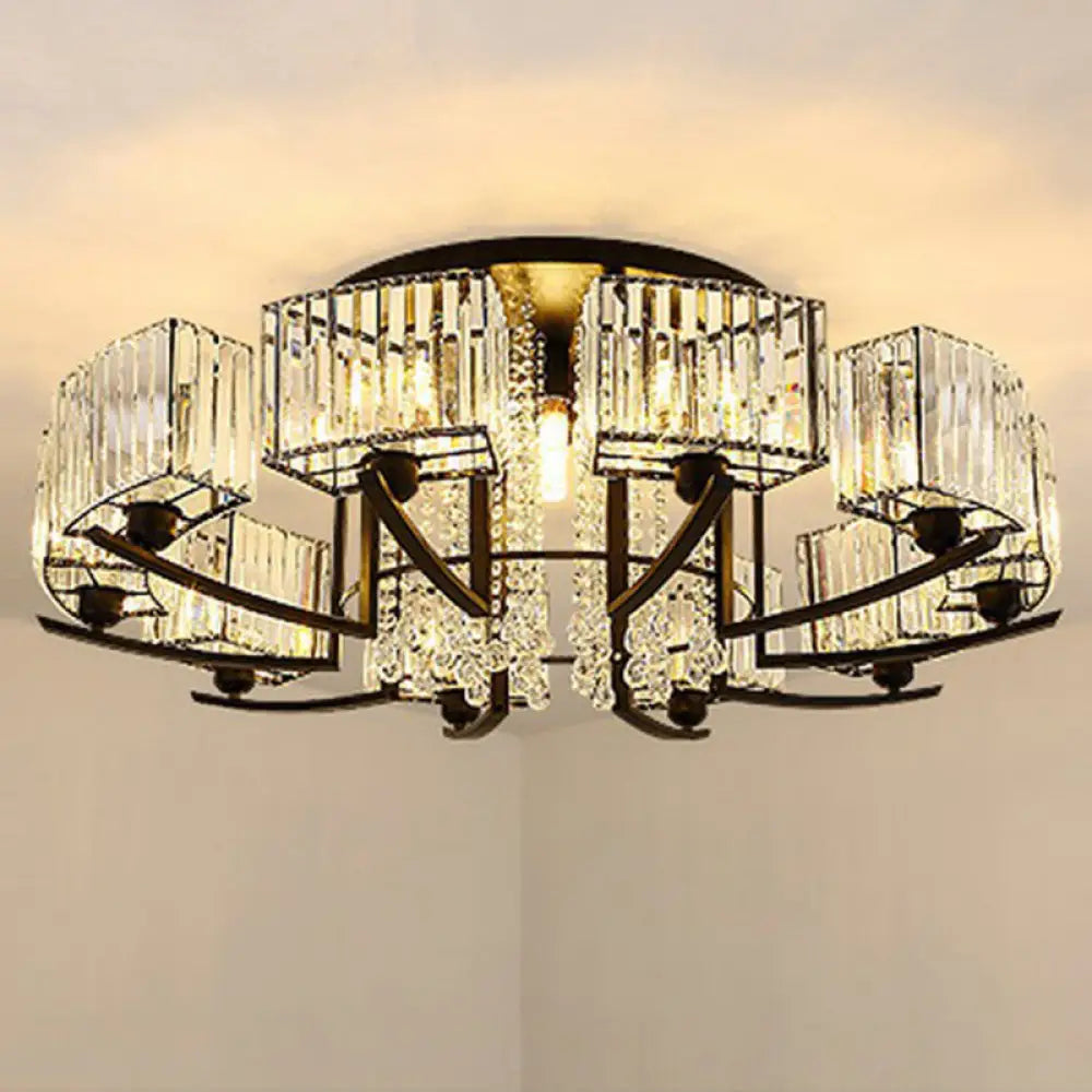 ديكوربايتس™ ديكوربايتس™ مصباح سقف غرفة النوم الكريستالي الأسود الحديث - مصباح مستطيل نصف مسطح