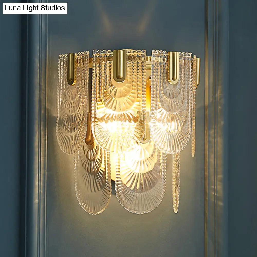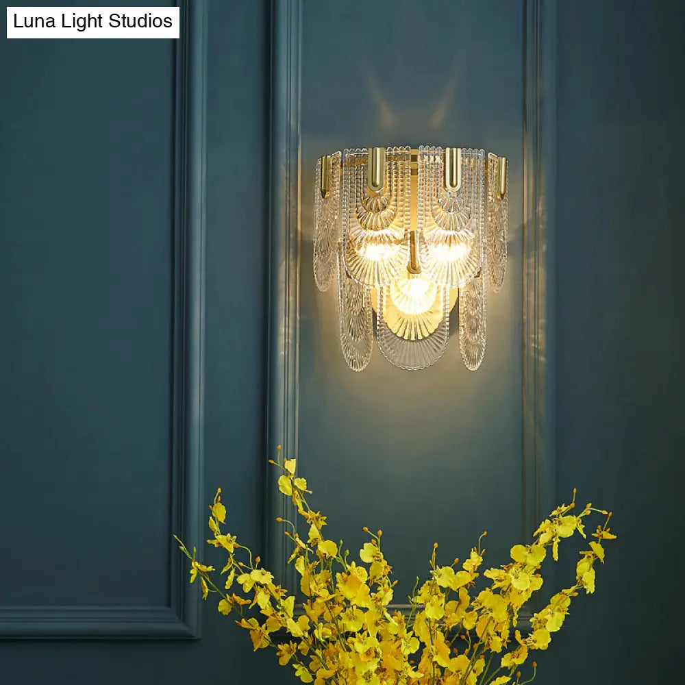 ديكوربايتس™ ديكوربايتس™ مصباح حائط ذهبي ثلاثي الأضواء من الزجاج المنحوت الحديث: مصباح حائطي من طبقتين لغرفة المعيشة
