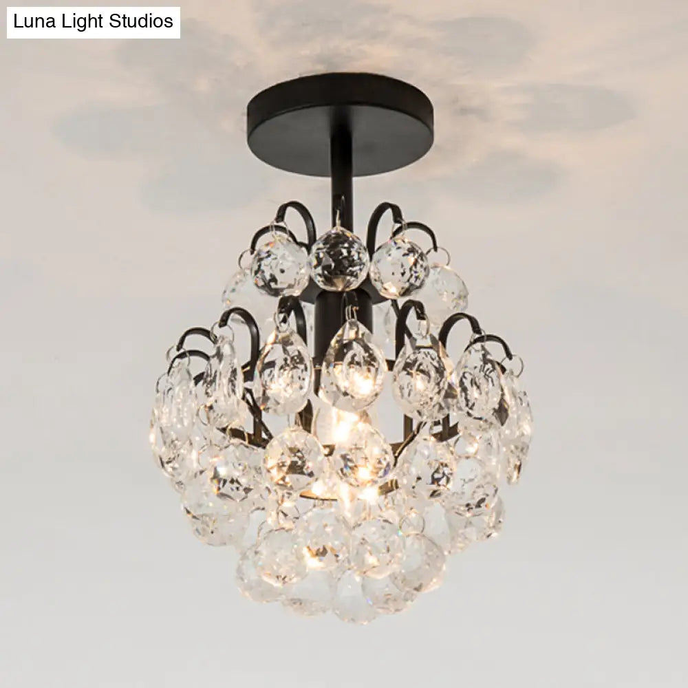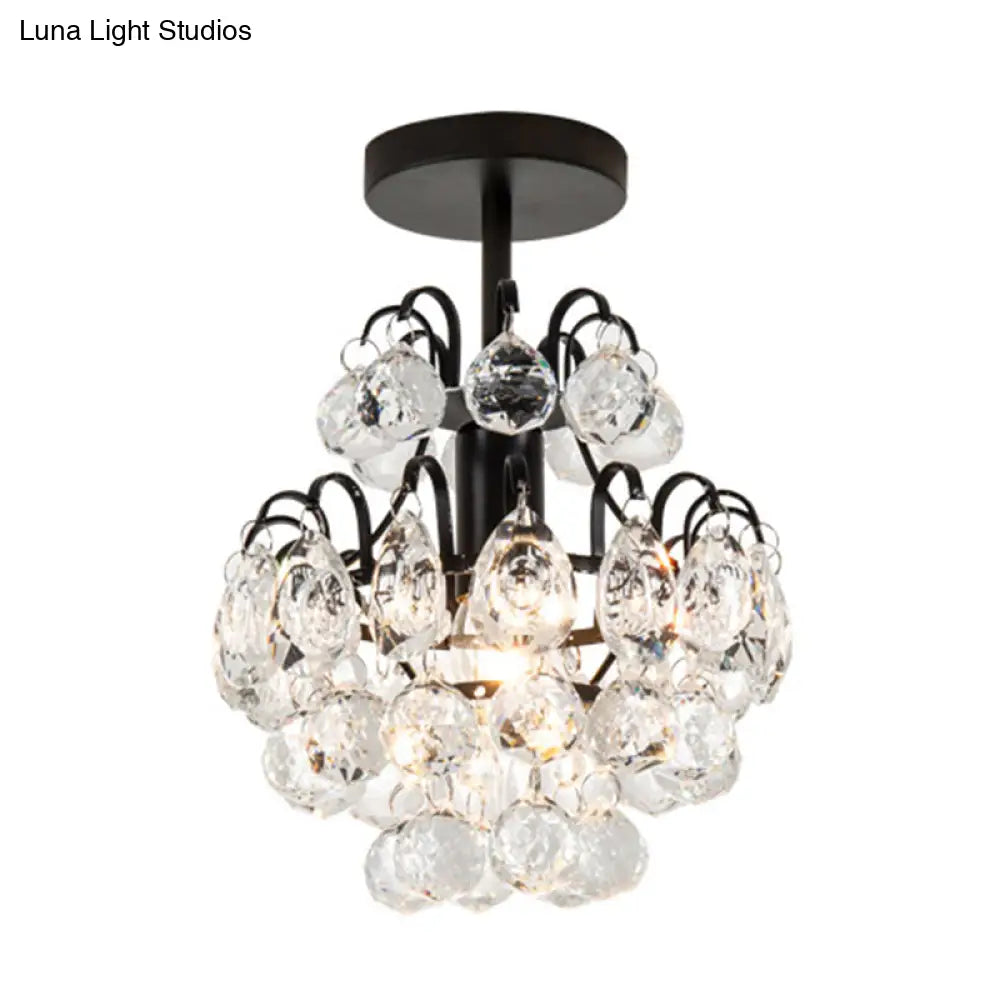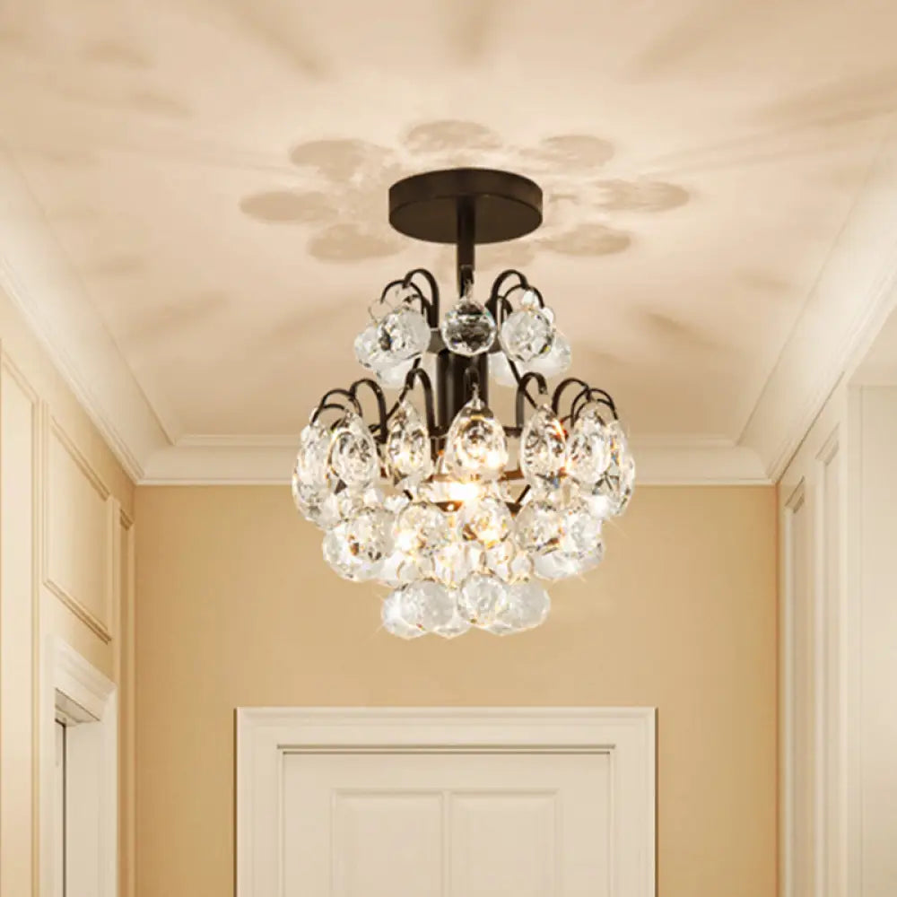 DecorBites™ مصباح كريستالي شبه مثبت على السقف من DecorBites™ - تصميم أنيق مخروطي الشكل بمصباح واحد باللون الأسود