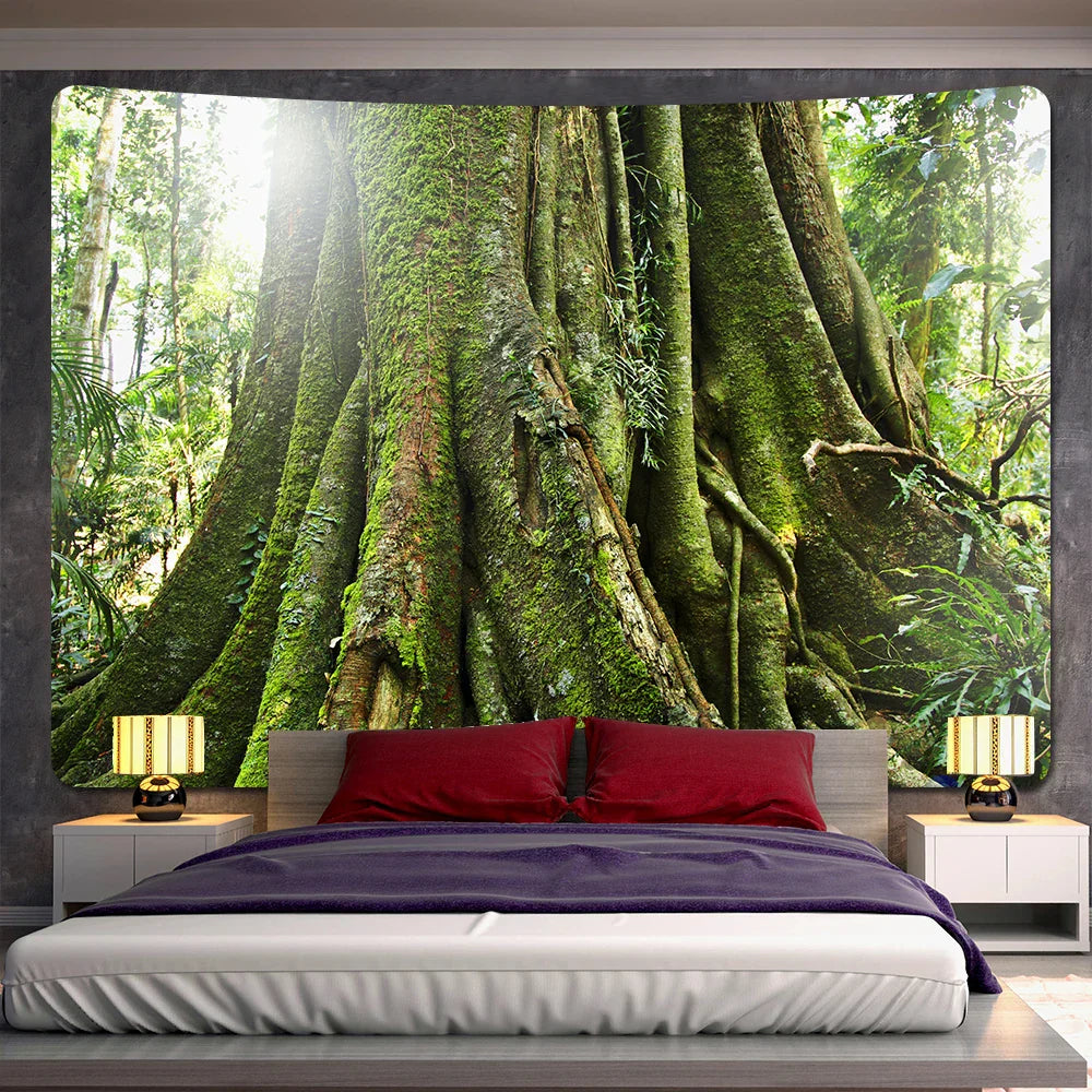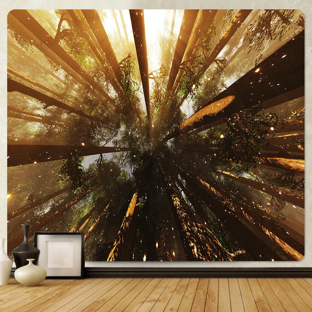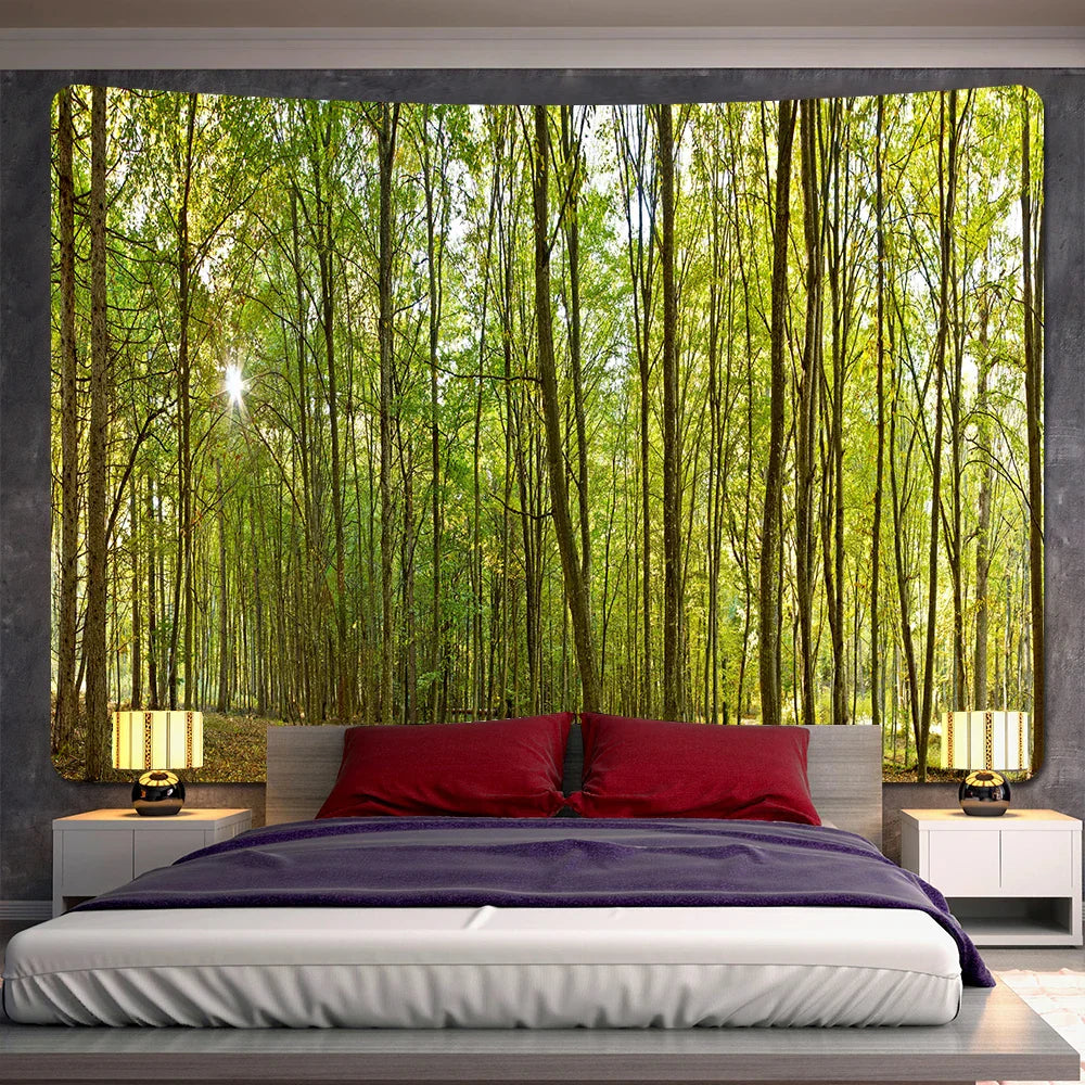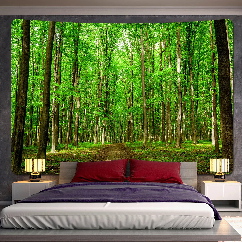 ديكور بايتس™ نسيج منظر الغابة: ديكور جداري ماندالا سايكدلي ومنشفة شاطئ