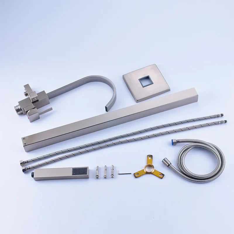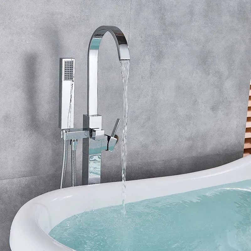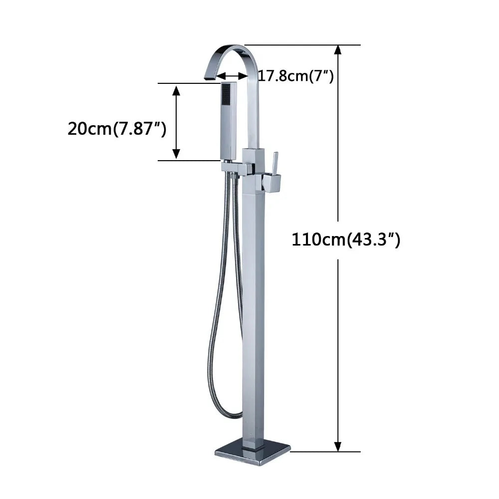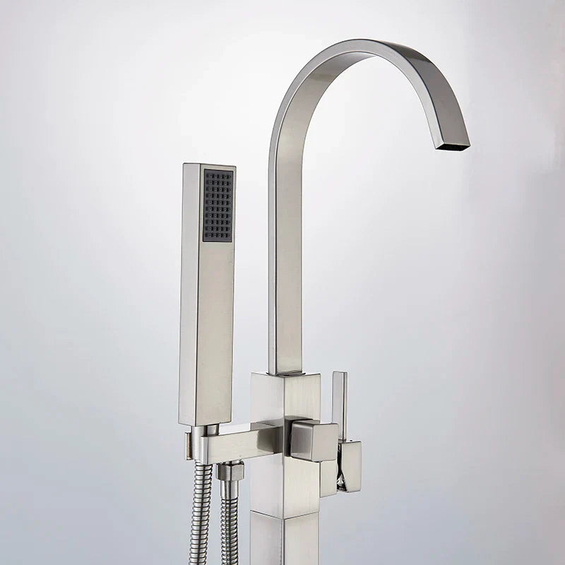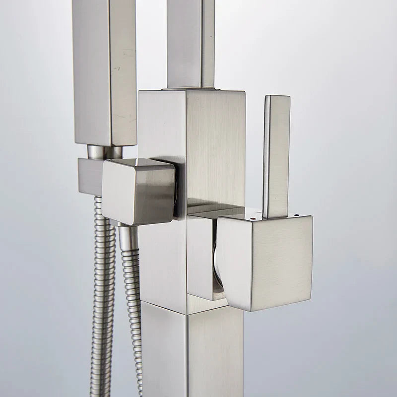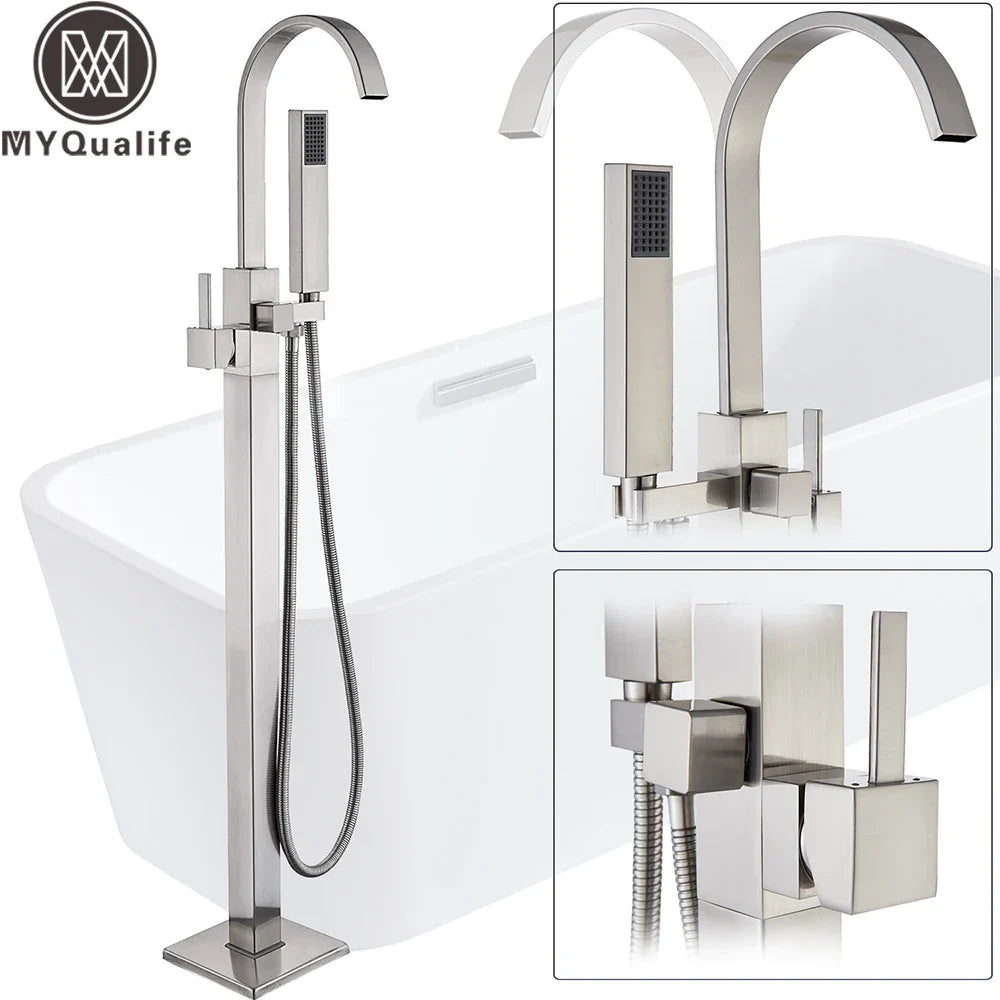 صنبور حوض استحمام قائم بذاته من DecorBites™ مع دش يدوي: صنبور خلاط مثبت على الأرضية من النيكل المصقول