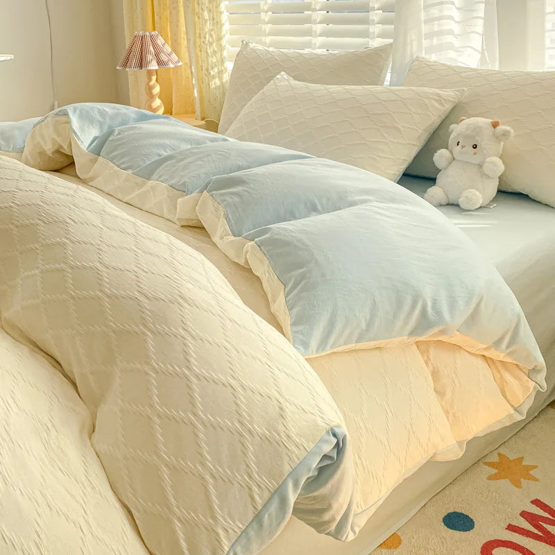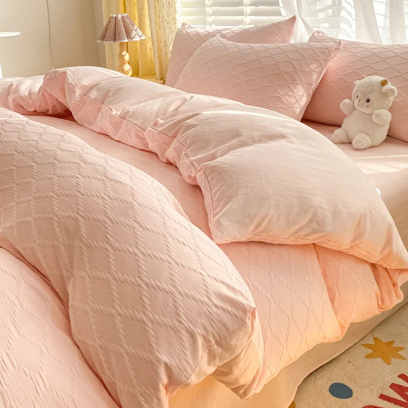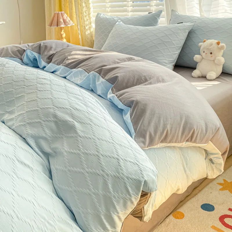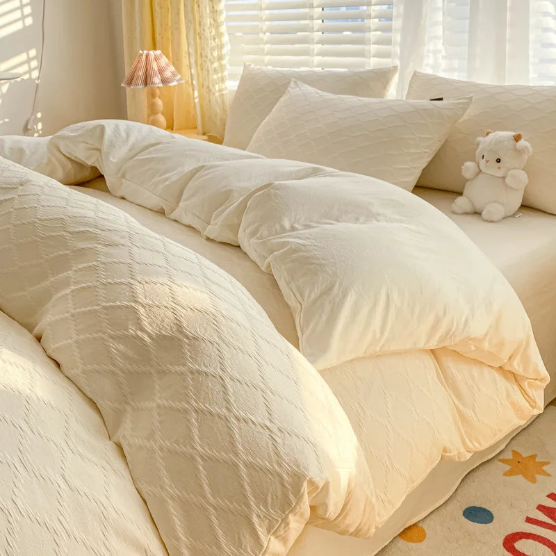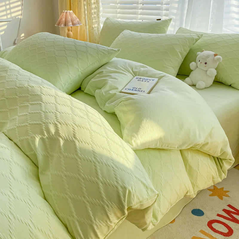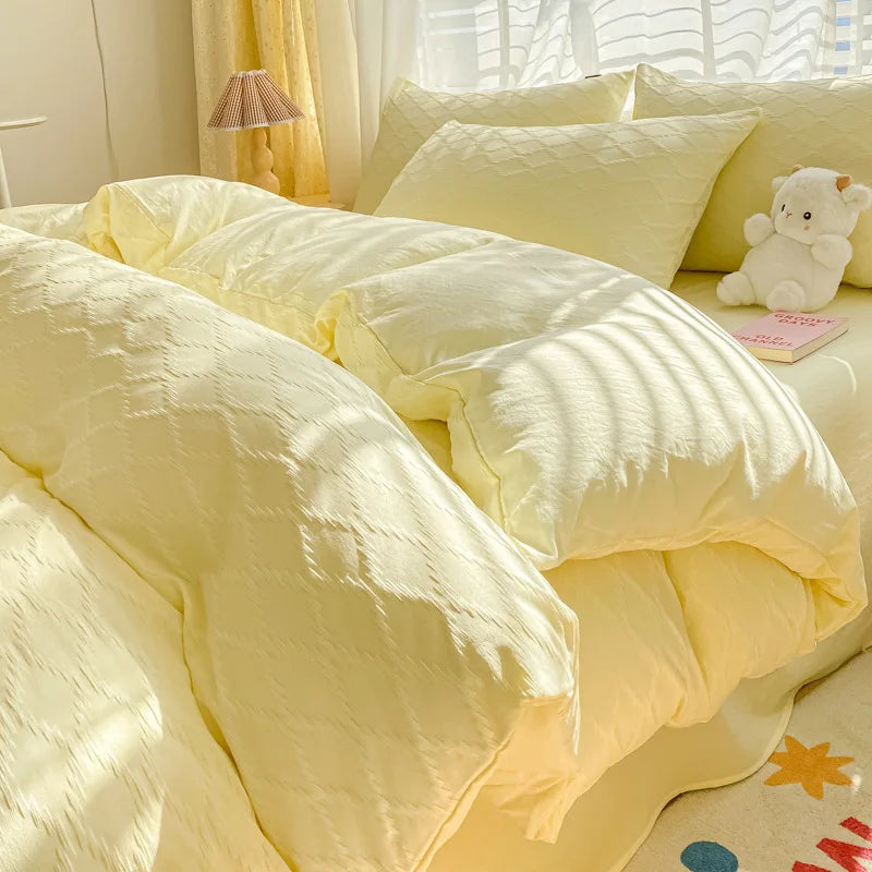 نقدم لكم مجموعة مفروشات السرير المصنوعة من قماش Fresh Bubble Yarn من Decorbites - إضافة فاخرة لغرفة نومك والتي تم تصميمها لتوفير أقصى درجات الراحة والأناقة لك.