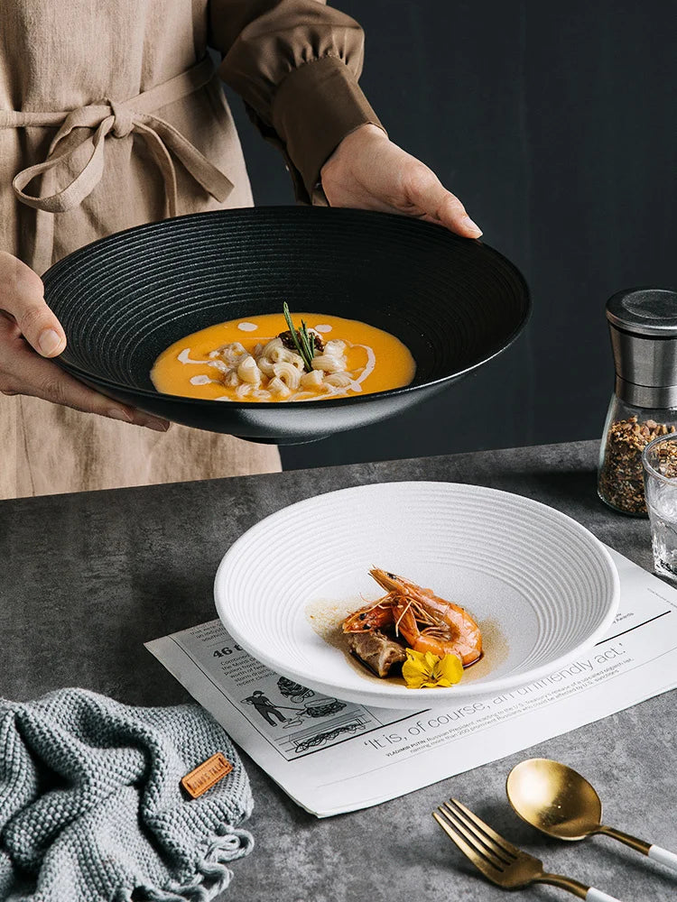 يُضفي طلاء التزيين المُثلّج الناعم لمسةً من الأناقة على طاولتك، مما يجعلها مثالية لتقديم حساءاتك المفضلة، ونودلزك، وأطباقك الأخرى. يتميز كل وعاء بنقشةٍ متناسقة، مما يُضفي لمسةً عصريةً خالدةً على طاولتك.