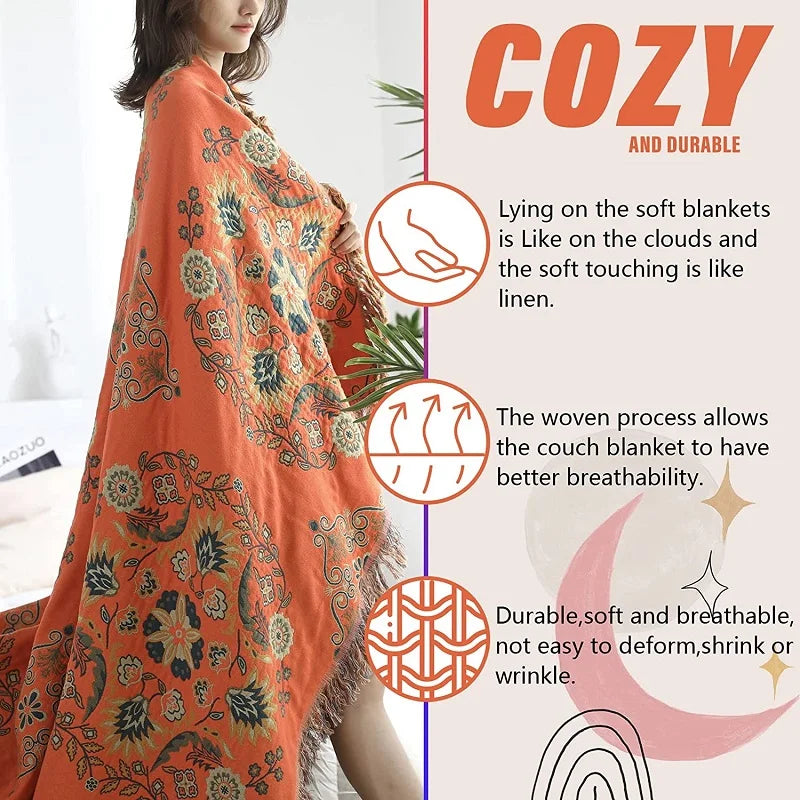 استمتع بأقصى درجات الراحة مع بطانية ديكوربيتس الشاش البوهيمية، المصنوعة من خيوط عالية الجودة (100 خيط) لشعور ناعم ومريح. تُضفي تقنية نسج الجاكار المتقنة لمسة من الرقي على أي غرفة، مما يجعلها الخيار الأمثل لجميع احتياجاتك الديكورية.